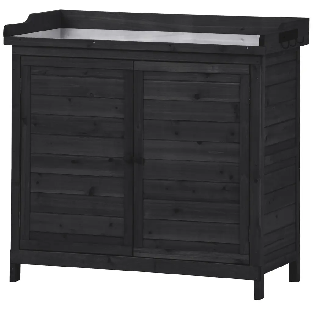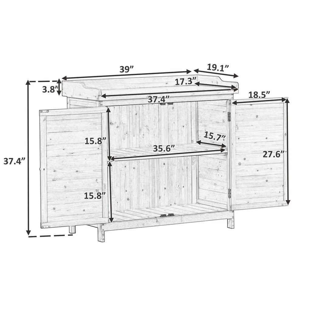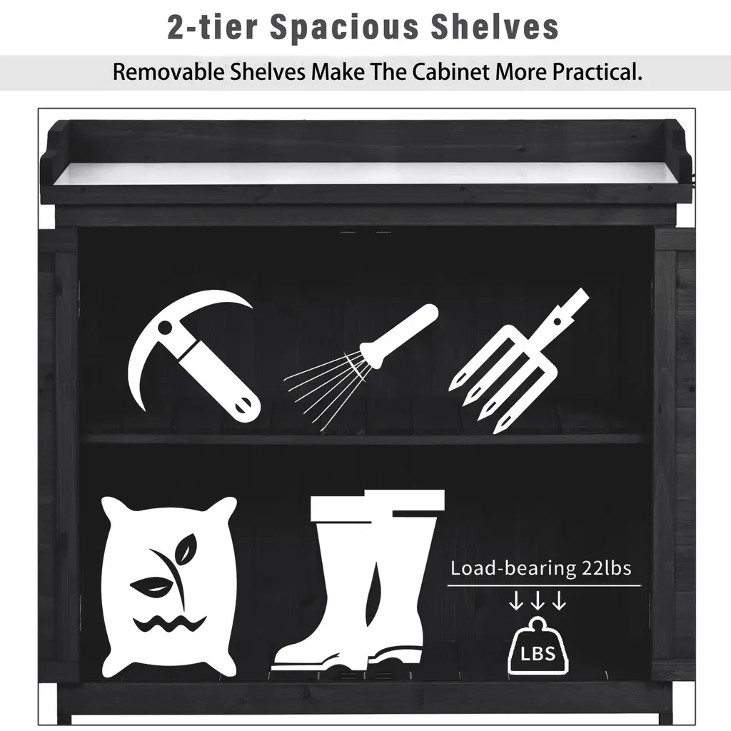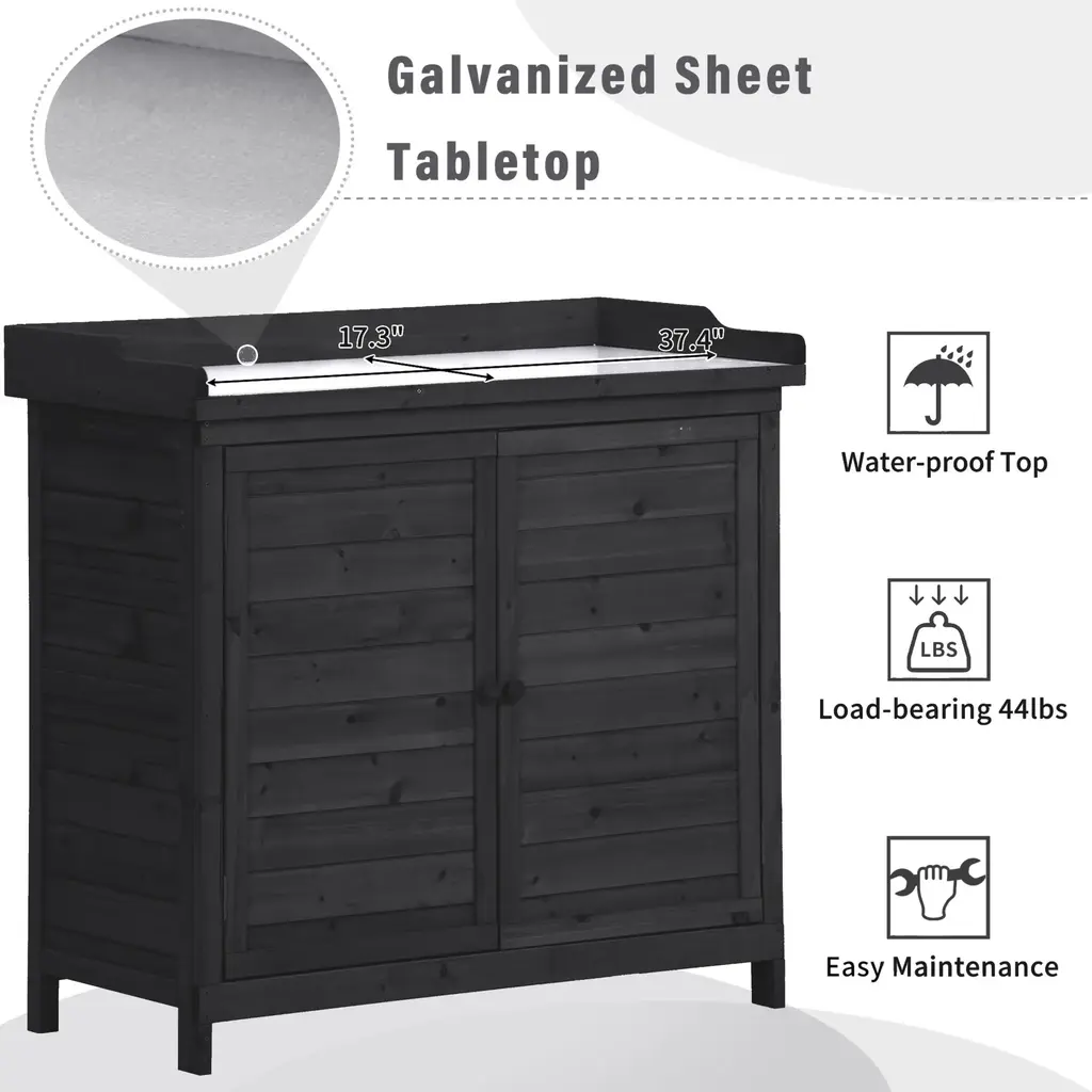 Constructed from top - notch fir wood, this bench is both rustic and tough. Fir wood's natural resistance to the elements means it can withstand all weather conditions, from hot summers to wet springs. Its warm, rich tones add a touch of natural elegance to your garden, fitting right in with the greenery. Beneath the tabletop is a 2 - tier storage cabinet. The upper tier is great for small items like seed packets and pruning shears, while the lower tier can hold bulkier things such as bags of soil and pots. The smooth - closing doors keep your gardening essentials safe and organized. The 39 - inch galvanized tabletop offers a generous workspace for all your potting tasks. Whether you're repotting plants, arranging flowers, or mixing soil, there's plenty of room. The galvanized finish protects against rust and corrosion, and it's easy to clean – just a quick wipe keeps it looking new. Features:Specification: