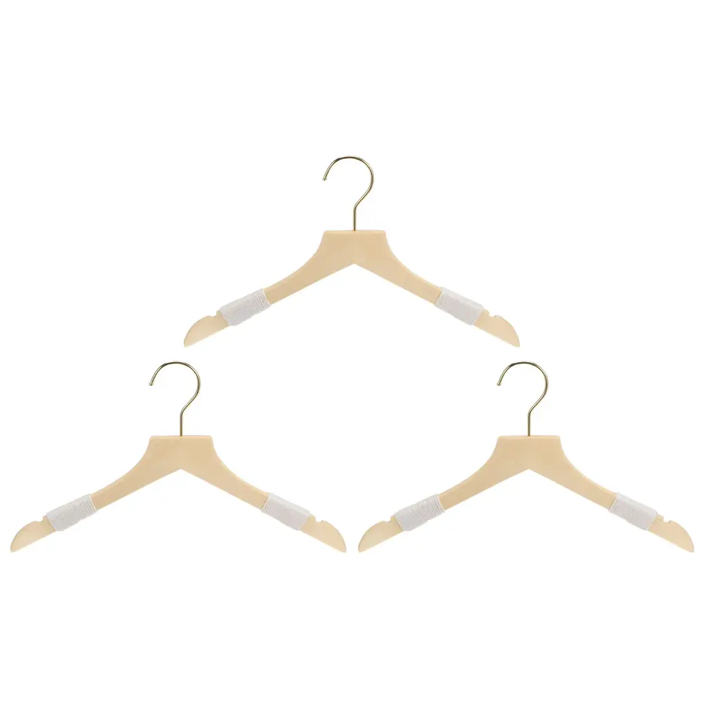 3Pcs Wooden Suit Hangers Flat Head Rope Wooden With Swivel Hook - 380x225x12mm