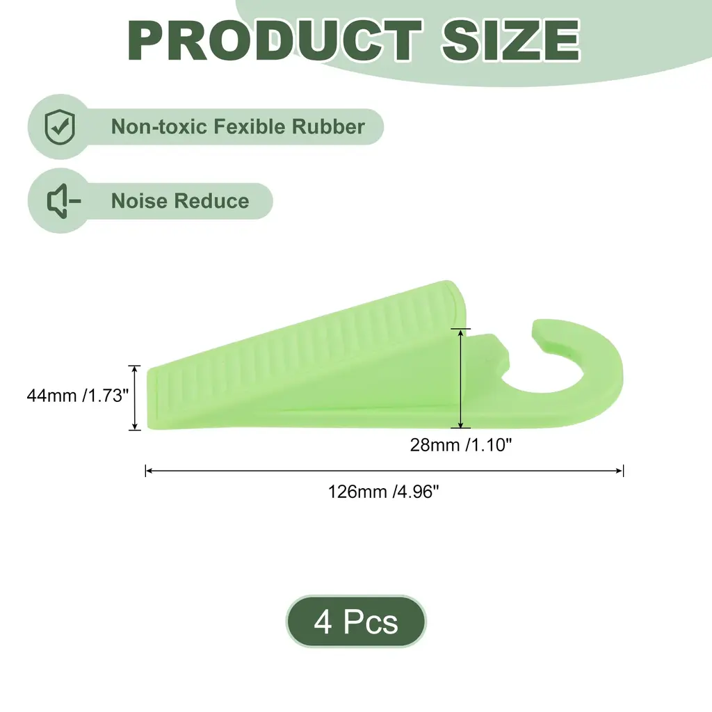 Description :Anti-Slip Design - The door stopper has a double-sided anti-slip function, with a horizontal stripe design on the surface, which increases the friction with the door and can easily fix the position of the door. The bottom hollowed-out anti-slip design keeps the door stable on the floor, with even force distribution during use, and is not easy to move.Material - The door stoppers for the bottom of the door are made of TPR, soft and non-slip, they will not scratch the surface of the floor or door; It has elasticity and can adapt to larger gaps, and can also be used on floors of various materials (wooden boards, ceramic tiles, and so on), and the trapezoidal design also provides cushioning force when closing the door.Easy Using - The door stopper with hook, can hang on the doorknob when not in use, and place the door stopper on the floor at a suitable distance, which is easy to replace and does not affect cleaning. In addition to being used as a buffer and fixing when opening the door, it can also be used when closing the door to stop it from opening from the outside.Wide Applications - These door stops can be applied to various occasions, such as offices, homes, shops, hotels, etc; These door stops ensure that doors do not accidentally slip and close, so you don't have to worry about the door suddenly closing in winds, protecting the door and walls.Specifications:Material: TPRColor: BrownTotal Size: 126 mm x 44 mm x 28 mm / 4.96 Inch x 1.73 Inch x 1.10 Inch (L*W*H)Package Content:4 Pcs x Door Stoppers