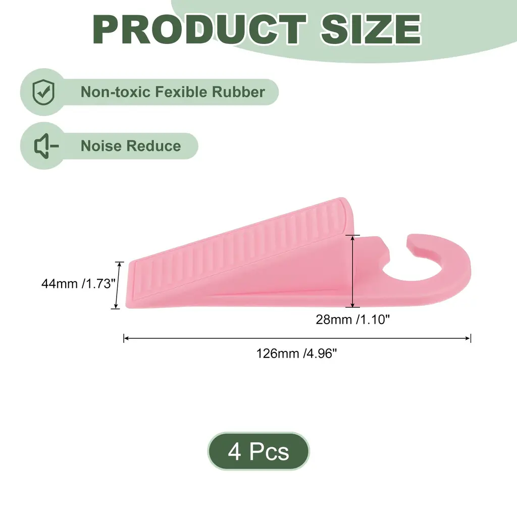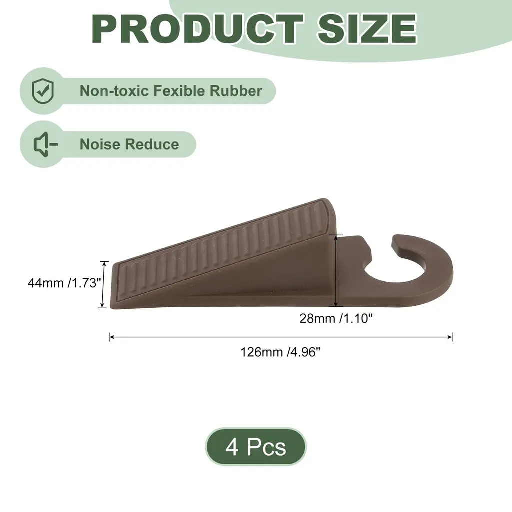 Description :Anti-Slip Design - The door stopper has a double-sided anti-slip function, with a horizontal stripe design on the surface, which increases the friction with the door and can easily fix the position of the door. The bottom hollowed-out anti-slip design keeps the door stable on the floor, with even force distribution during use, and is not easy to move.Material - The door stoppers for the bottom of the door are made of TPR, soft and non-slip, they will not scratch the surface of the floor or door; It has elasticity and can adapt to larger gaps, and can also be used on floors of various materials (wooden boards, ceramic tiles, and so on), and the trapezoidal design also provides cushioning force when closing the door.Easy Using - The door stopper with hook, can hang on the doorknob when not in use, and place the door stopper on the floor at a suitable distance, which is easy to replace and does not affect cleaning. In addition to being used as a buffer and fixing when opening the door, it can also be used when closing the door to stop it from opening from the outside.Wide Applications - These door stops can be applied to various occasions, such as offices, homes, shops, hotels, etc; These door stops ensure that doors do not accidentally slip and close, so you don't have to worry about the door suddenly closing in winds, protecting the door and walls.Specifications:Material: TPRColor: BrownTotal Size: 126 mm x 44 mm x 28 mm / 4.96 Inch x 1.73 Inch x 1.10 Inch (L*W*H)Package Content:4 Pcs x Door Stoppers
