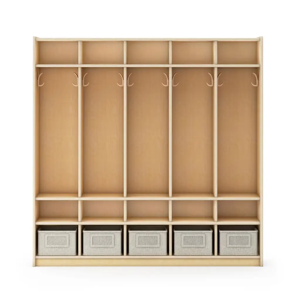 Organize your space efficiently with the 47" W Cubby Storage Organizer Cubes, designed specifically for busy environments like daycares, classrooms, playrooms, and mudrooms. This versatile wall-mounted unit features 10 spacious cubbies and 5 sturdy hooks, providing ample storage for coats, books, lunch bags, toys, and more, keeping essentials neatly arranged and easily accessible.Maximize your floor space with the smart, double-stacked wall-hanging design that supports storage for up to 10 children while occupying minimal wall area. The included mounting hardware for wood studs ensures quick and secure installation, making it a convenient solution for any busy setting.Built for durability and easy maintenance, this cubby organizer is crafted from 100% birch plywood with mortise and hex screw joinery, ensuring exceptional stability and longevity. The durable finish is stain resistant and allows for quick cleaning, perfect for high-traffic educational and play environments.Safety is a priority with fully rounded corners and edges to protect children from sharp surfaces. The unit is GREENGUARD Gold certified, meeting rigorous standards for low chemical emissions and promoting healthy indoor air quality.Measuring 47" x 11.7" x 26.5", this cubby storage organizer is easy to assemble and comes with an installation kit for wood studs. Experience a tidy, organized space with this practical and stylish storage solution ideal for classrooms, daycares, preschools, and more.