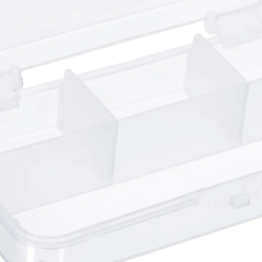 Color: Clear; Overall Size: 12.5 x 6 x 2.5cm / 4.9 x 2.4 x 1 inch (L*W*H)Feature: Sturdy plastic material in fine workmanship, portable and reusable, strong and durable in use for a long timeAdvantage: Not only keep the contents in a good condition but also is convenient for storing or carrying, and does not take up spaceApplication: This box is great for storing fishing lures, fishing swivels, hooks, tools, and other fishing accessory itemsNotice: Before placing the order, please confirm the sizeThis box is great for storing fishing lures, fishing swivels, hooks, tools, and other fishing accessory items.SpecificationColor: ClearMaterial: PlasticOverall Size: 12.5 x 6 x 2.5cm / 4.9 x 2.4 x 1 inch (L*W*H)Package Content: 4 x Fishing Lure Storage BoxAdvantagesSturdy plastic material in fine workmanship, portable and reusable, strong and durable in use for a long time.Not only stores your things but also keeps the contents in a good condition, it is convenient for storing or carrying and does not take up space.InstructionPut the items you need to store in the box, then close them to avoid them falling off.NoticeBefore placing the order, please confirm the size.
