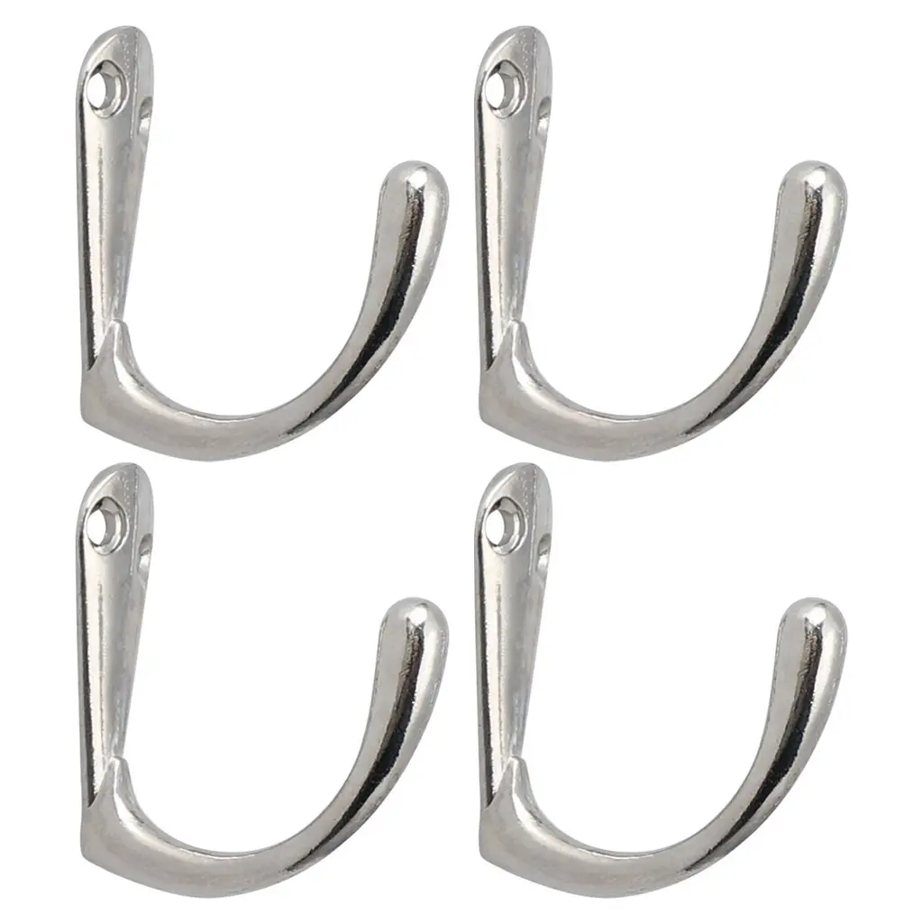 4Pcs Robe Hooks Zinc Alloy Hook Bag Bathroom Diy Hanger W Screws, Silver Tone - N/a