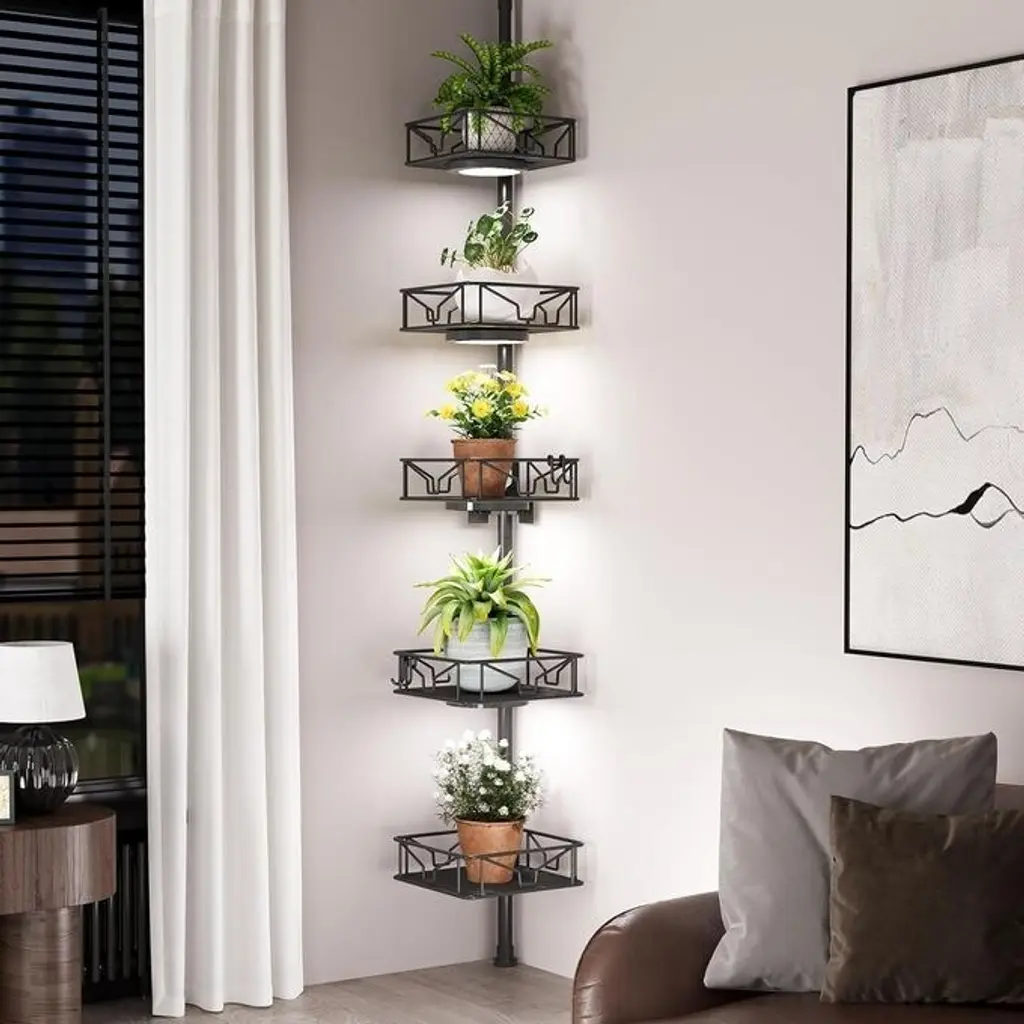 5 Tier Adjustable Corner Shower Basin With Hook Organizer Rustproof Tie Rods 62-116 In - 11.7"d X 11.7"w X 116"h - Black
