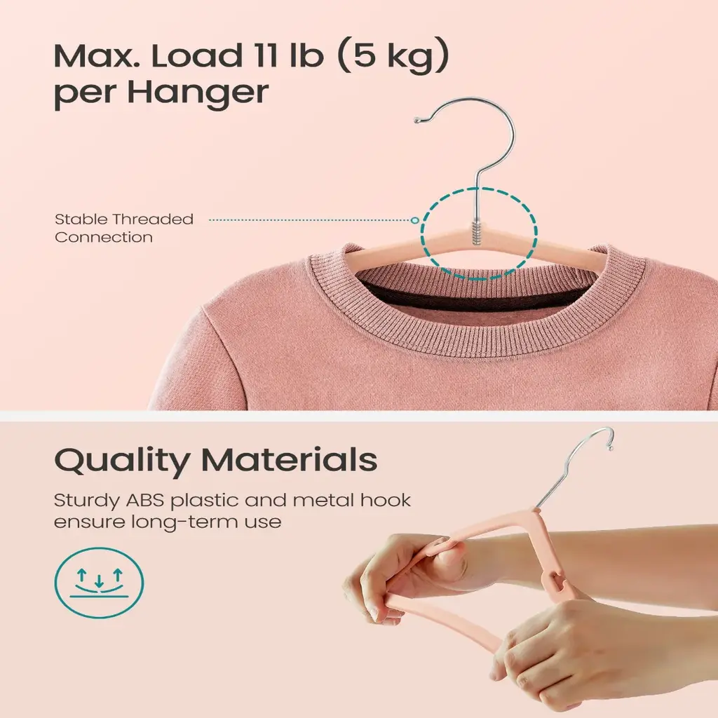 Specifications:Key Features: Description: Introducing our versatile collection of baby hangers, available in Cloud White, Dove Grey, and Coral Pink. Designed for convenience, these hangers come in two sizes: 13.8"L x 0.2"W x 7.9"H and 11"L x 0.2"W x 6.9"H, making them ideal for organizing children's clothing. Crafted from sturdy ABS plastic with a plush velvet surface, these hangers feature a non-slip design that keeps outfits securely in place. The innovative shoulder notches are perfect for hanging camisoles and dresses, preventing slips and falls. Each hanger can support up to 11 lbs, providing strong support for heavier garments like winter coats. At just 0.2" thick, these space-saving hangers maximize your closet organization, while the 360° swivel hooks allow for easy access and efficient storage. The curved shoulder design ensures clothes maintain their shape, making these hangers a practical choice for children aged 0-6. Perfect for any nursery or children's closet!