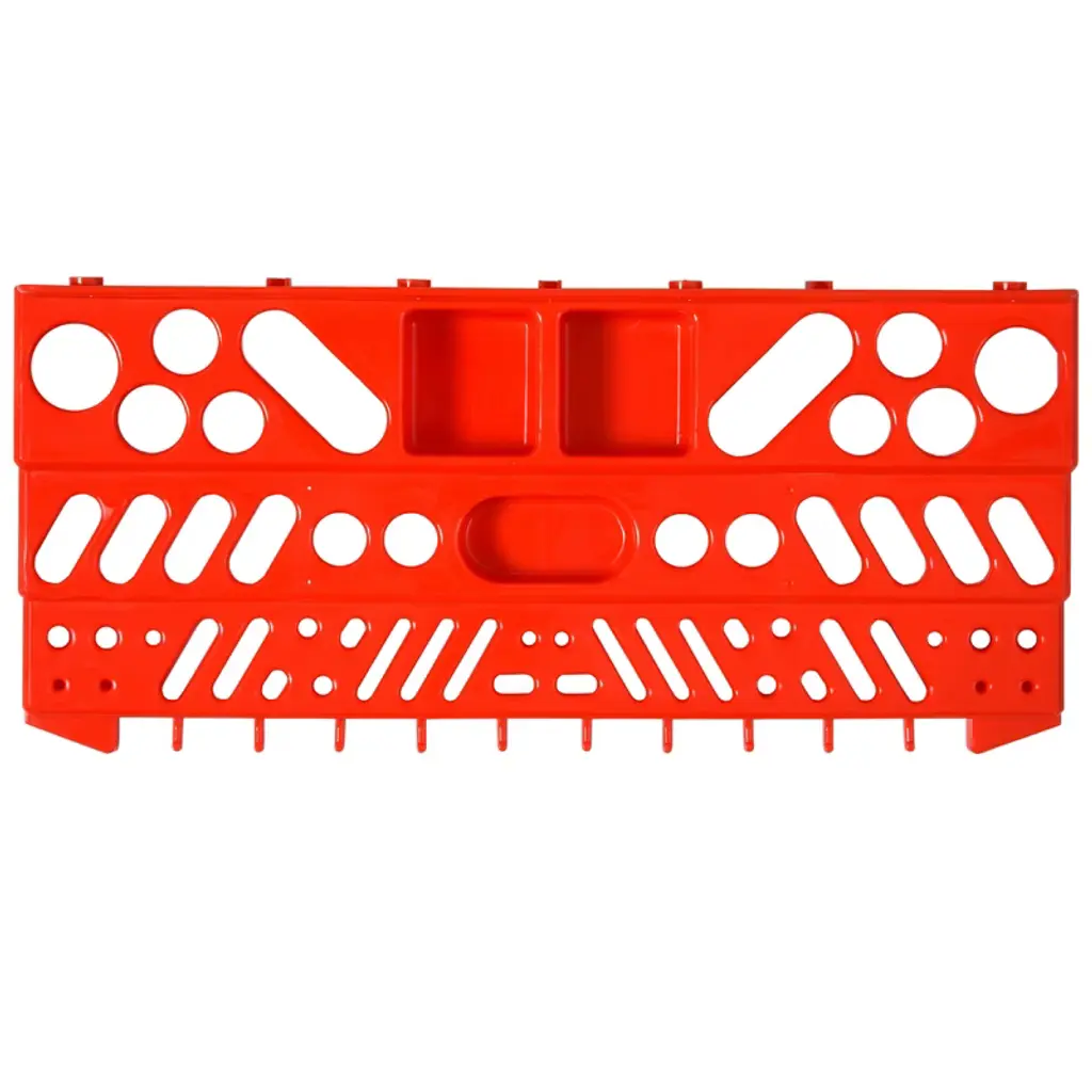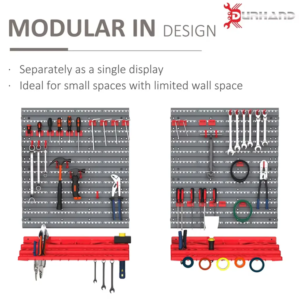This 54 piece tool organizer will help you to make tools well organized and easily accessible. It made from quality PP and has impressive loading capacity. 2 pegboards and 2 shelves can be used as a large unit or as individual displays, ideal for small spaces with limited wall space. Hooks in different types will suit various tools such as screwdrivers, hammers, screws, nuts, bolts, nails, and more!Features:- 54 piece included- Tool organizer with 2 pegboards and 2 shelves, ideal for workshops, garages and home workstations- Comes with 5 different types of hooks to suit screwdrivers, hammers, pliers, and more- Pegboards and shelves can be used separately as an individual display for limited wall space- quality PP construction for long term using- Assembly RequiredSpecification:- Color: Grey, Red- Material: PP- Overall Dimension: 21" W x 9" D x 37.5" H- Pegboard Dimension: 21" H x 18.5" W x 0.5" D- Tool Shelf Dimension: 21" W x 8.75" D x 3" H- Weight Capacity: 66lbs (each pegboard), 18lbs (each shelf)- Accessories: 50 Hooks, ScrewsPackage Includes:2 x Pegboard2 x Shelf1 x ManualHooks and Screws
