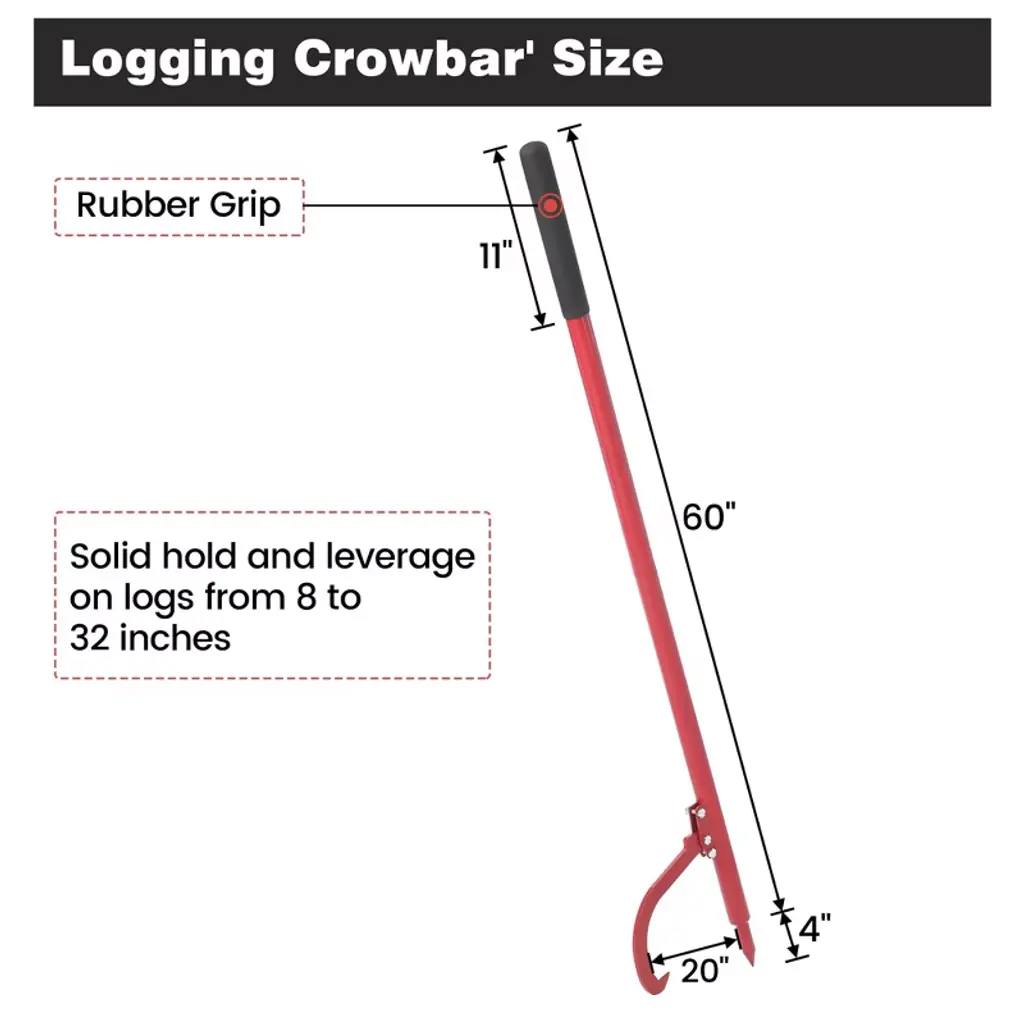 [Make Outdoor Chores Easier]: Gather firewood for your home with ease by using the Felled 60-Inch Wood Peavey Log Turner Tool; Add to your logging equipment to make moving wood easily. [Comfortable Grip]: 60-inch long peavey logging tool handle provides adequate leverage to preserve time and energy while positioning and moving large logs and beams,which can handle logs from 8 to 32 inches in diameter. [Effortless Wood Movement]: Position the log jack handle upwards with the pointed tip on one side of the log, and proceed to secure your grip by wrapping the log grabber hook around it. Apply pressure to the log roller tool peavey bar until the log is in the desired position. [Built to Last]: Steel logging hook bites into the wood allowing you to maneuver heavier logs with less effort; Log handler tree peavy tool has an 11.8-inch (30cm) rubber grip for added comfort; 1.3-inch (3.3cm) diameter aluminum log lifter handle gives depth for added durability. [Versatitle Tree Cutting Equipment]: Logging tools can be used in sawmills, woodlots, or your backyard; Bright powder-coated finish ensures optimal durability and visibility of your log leverage pole.