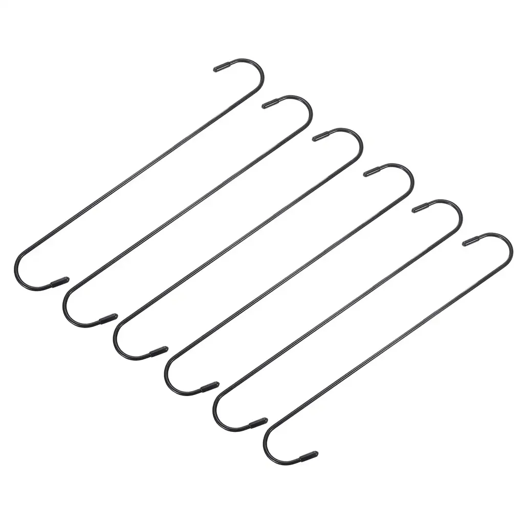 Extension S hooks are perfect for both indoor and outdoor use, such as hanging kitchen utensils, garage tools, closet clothing organization, as well as for hanging plant pots, flower baskets, bird feeders, or other outdoor decorations in gardens, patios, or balconies.SpecificationColor: BlackMaterial: MetalSize: 30x4.3cm / 12x2 inchWire Diameter: 4mm / 0.16 inchPackage List: 6Pcs x Extra Large S HooksAdvantageHeavy type S Hooks are made of durable metal, with a smooth surface, sturdy construction, rust resistance, corrosion resistance, and a long lifespan. They are capable of supporting heavy objects without bending or breaking. By using S hooks to hang items, you can free up valuable space on surfaces or shelves, making better use of vertical space.InstructionHang your plants, clothing, tools, and more on rods, racks or shelves without the need for drilling.NOTE: Please confirm the required size before purchase.