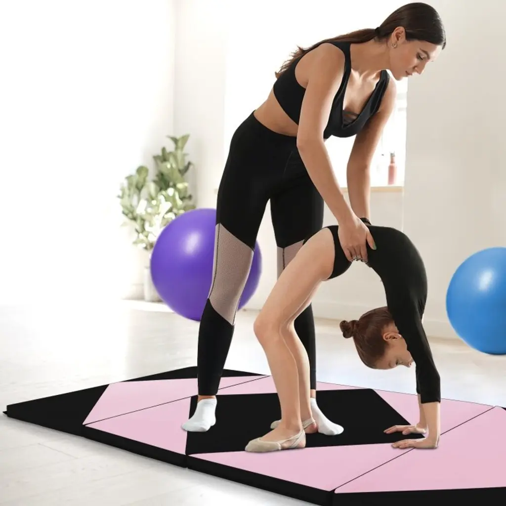 8 Feet Pu Leather Folding Gymnastics Mat With Hook And Loop Fasteners - 8' X 4' X 2" - Black-Pink