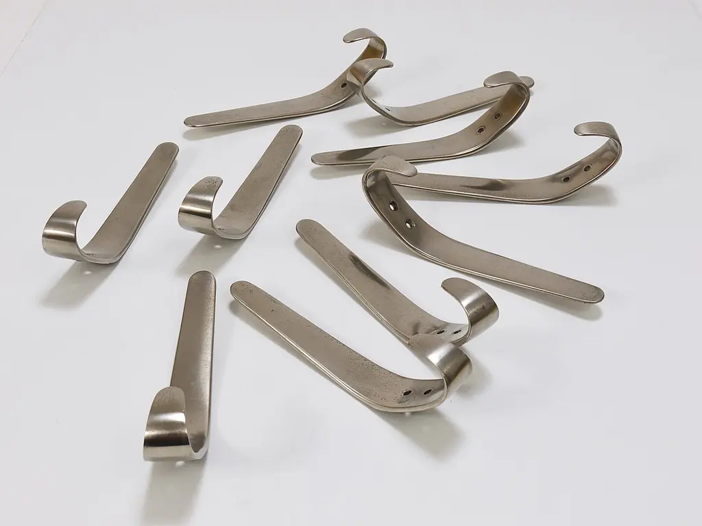 9X Vintage Carl Auböck Ii Nickel-Plated Brass Wall Hooks, Austria, 1950s
