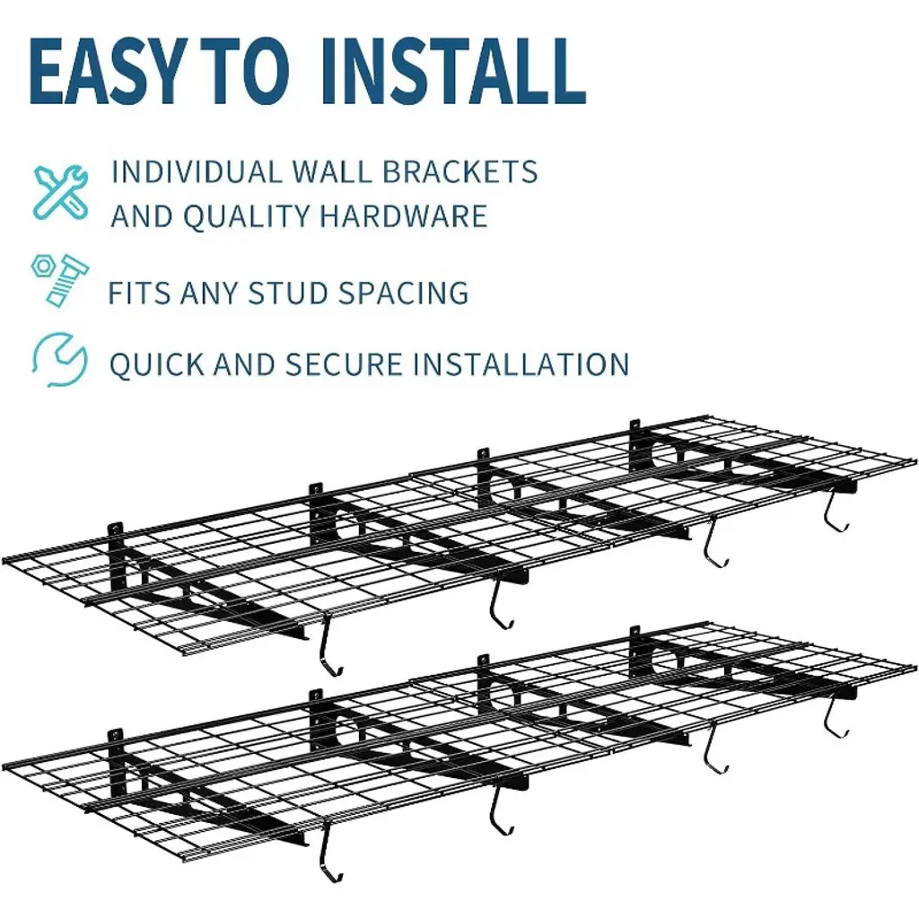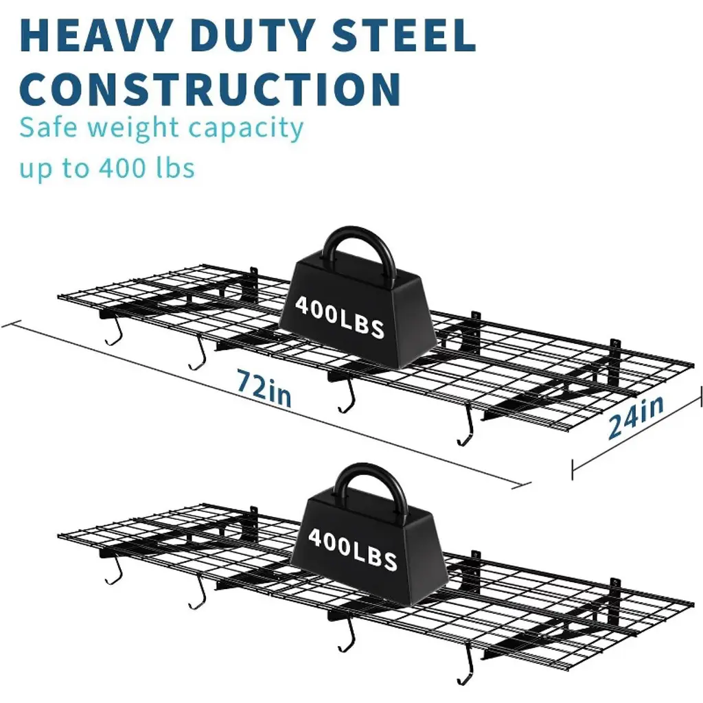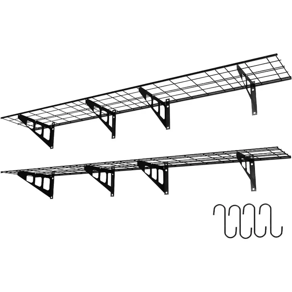 Acekool Garage Wall Shelving With Hooks, 72' X 24' Wall-mounted Storage Shelves, Holds Up To 400 Lbs Each, 2 Pack, Black