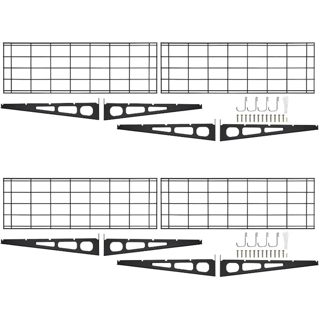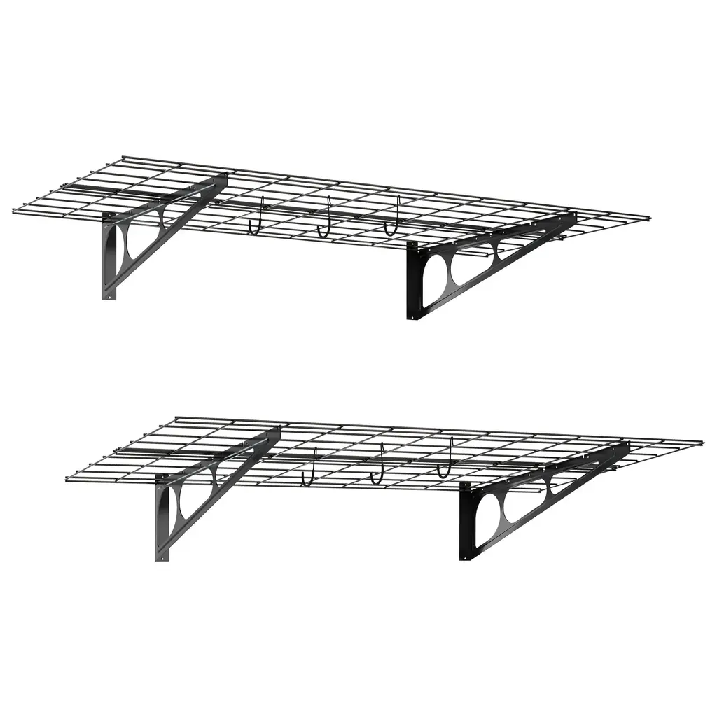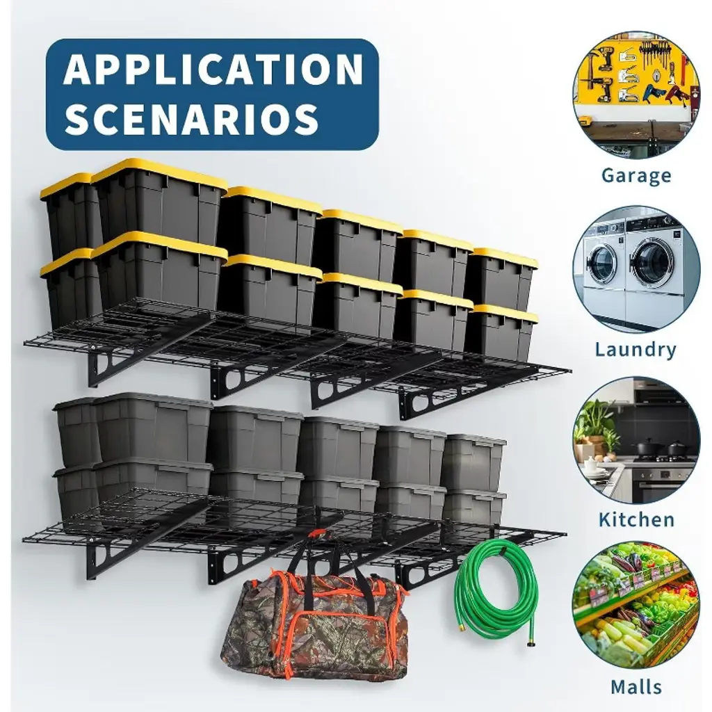 Acekool Garage Wall Shelving With Hooks, 72' X 24' Wall-mounted Storage Shelves, Holds Up To 400 Lbs Each, 2 Pack, Black