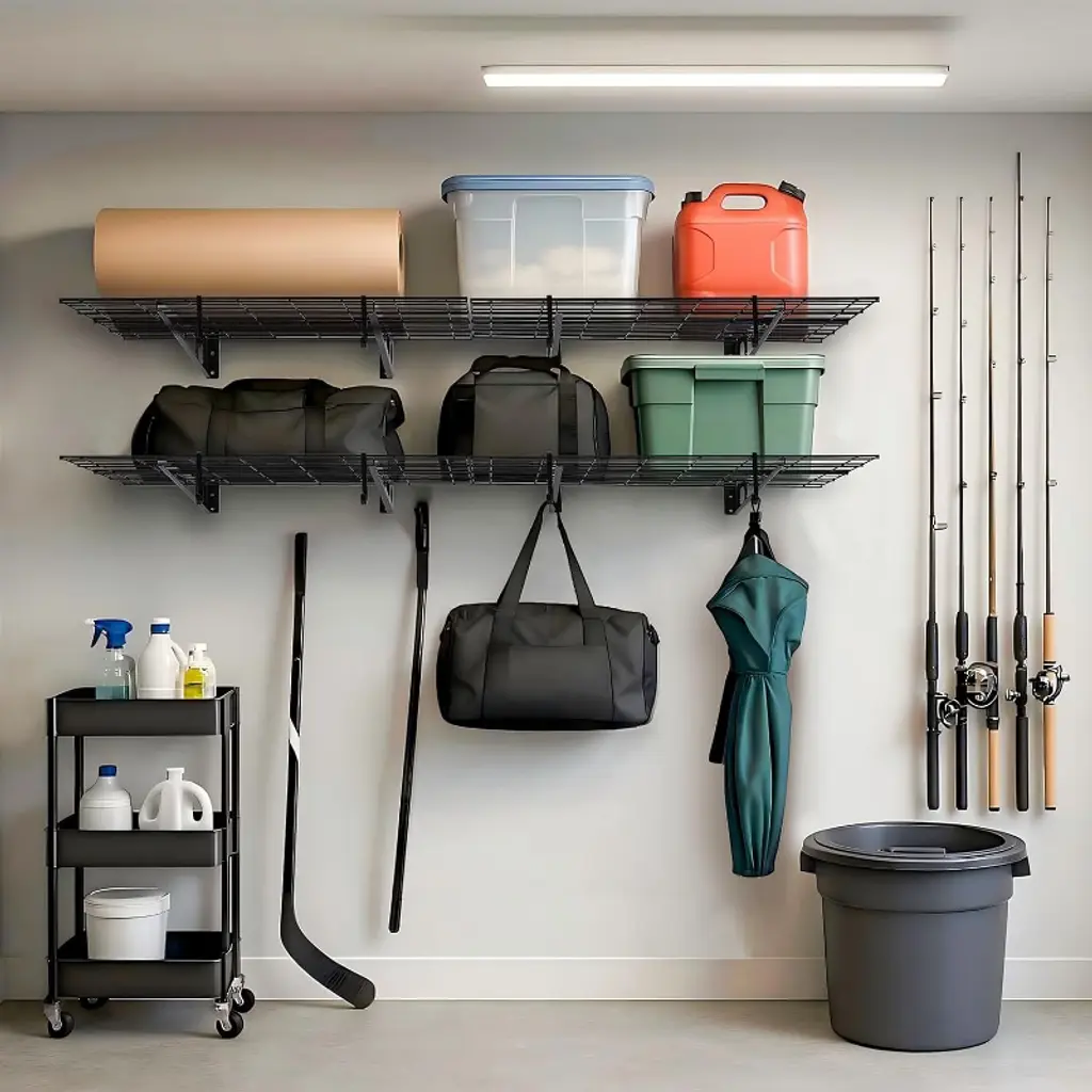 The Acekool Garage Wall Shelving system offers strong and reliable storage with reinforced steel construction. Its two-tier design holds up to 200 lbs each, perfect for tools and heavy items. Triangular brackets and dual-wall anchors ensure stability and safety. Easy installation hardware fits common stud spacing. Sized at 3.87 feet by 2 feet per shelf, these shelves help organize your garage efficiently and clear floor space.