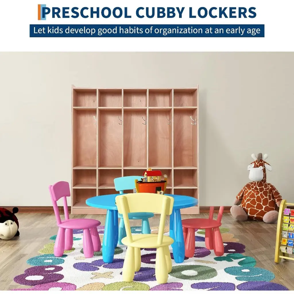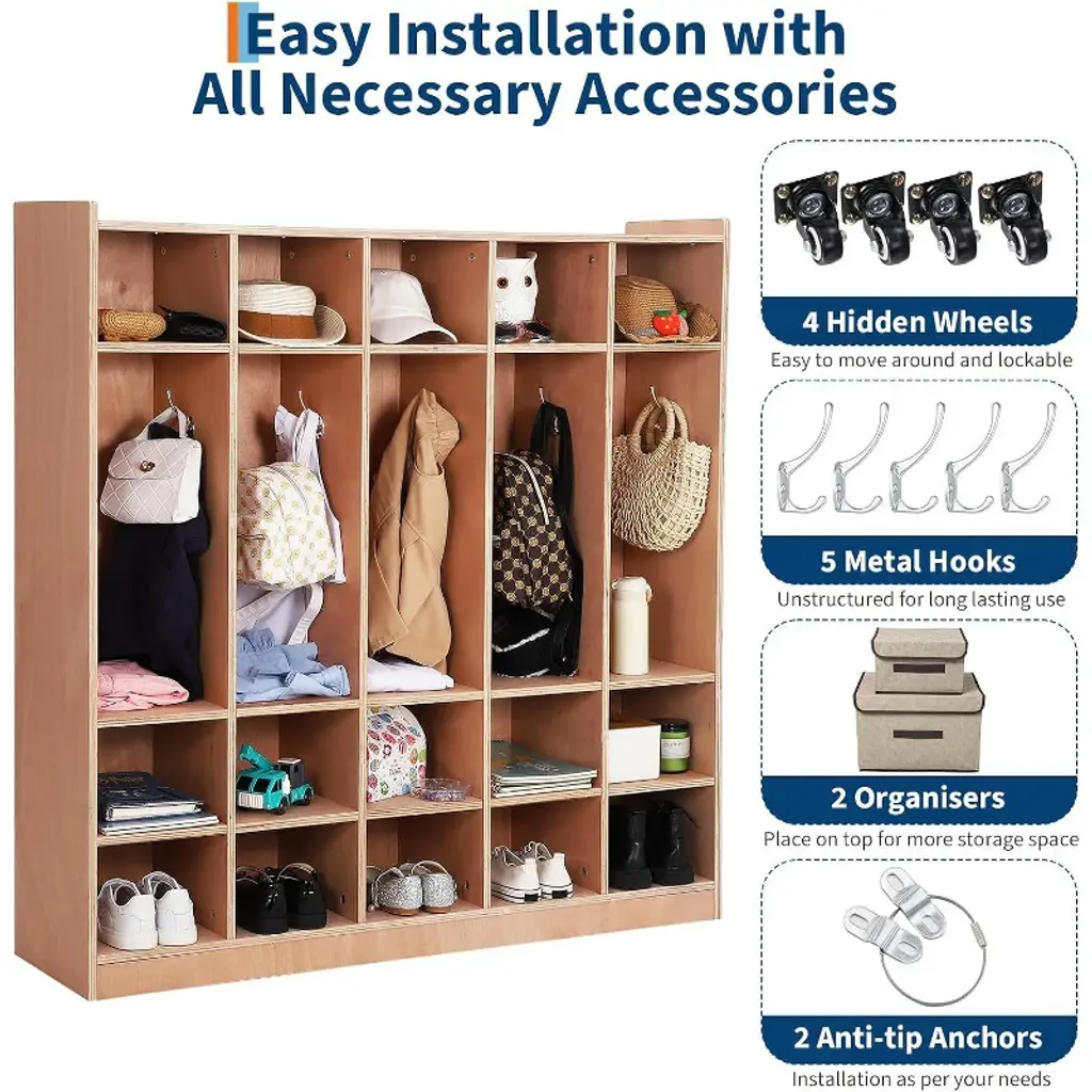 Acekool Kids Coat Locker With Cubbies, Storage Organizer With Hooks, Bins & Casters For School, Entryway, Mudroom, 5-section+15 Cubbies