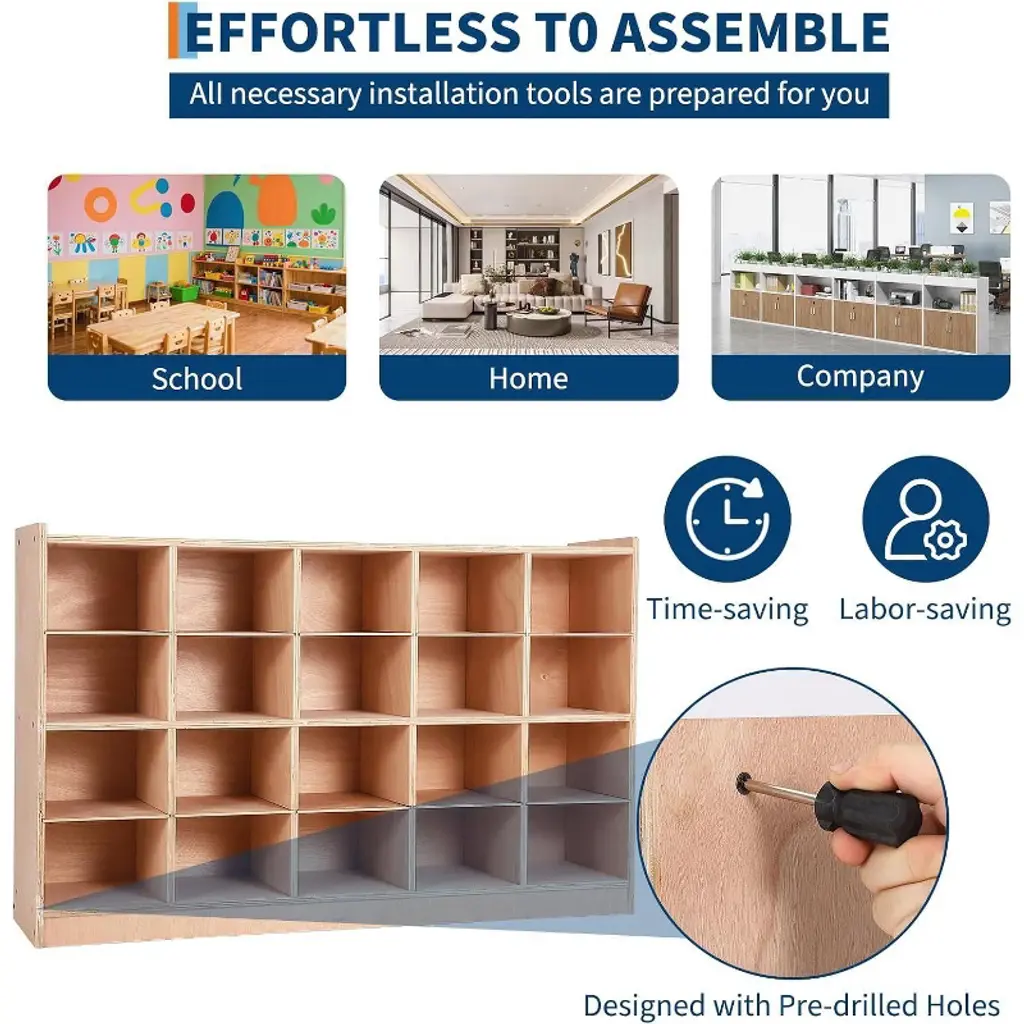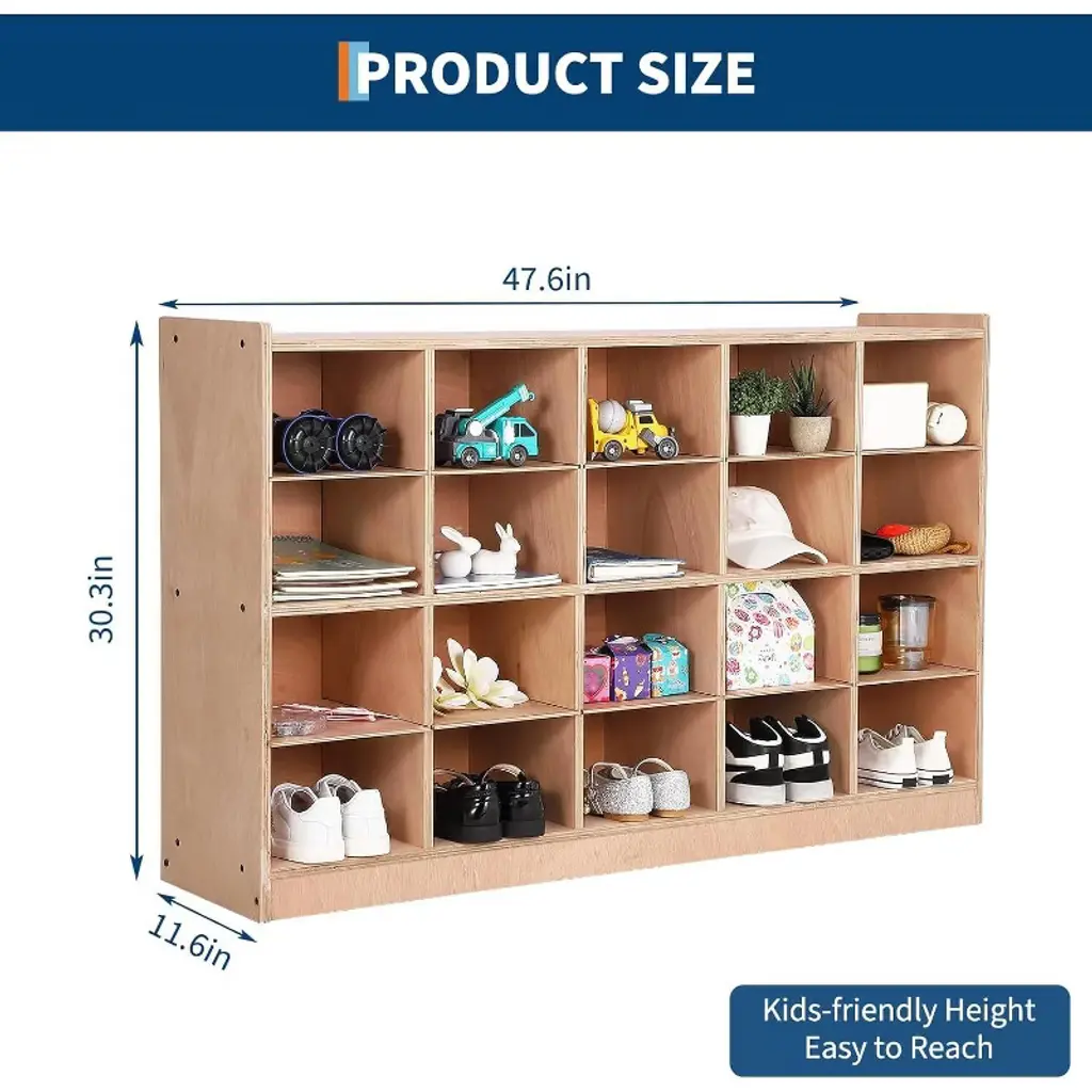 Create an organized space for children’s belongings with the Acekool kids coat locker and cubby organizer. Designed for classrooms, daycare centers, mudrooms, or busy family entryways, this locker brings easy order to jackets, backpacks, lunchboxes, and school supplies. Smooth rounded corners and low-profile edges make it kid-friendly and safe for everyday access. With generous cubby holes, double-sided hooks, and handy storage bins, children can quickly find their items and learn helpful organizing habits. Surfaces are finished for easy cleaning and everyday convenience. Casters allow you to move the unit around as your space or needs change, making it a flexible option for changing classrooms or home layouts. Assembly is straightforward with all hardware and step-by-step instructions included. This unit’s balanced size fits a range of spaces, keeping daily routines smooth and clutter-free. Choose Acekool for simple, reliable storage that supports both learning and play in any busy setting.