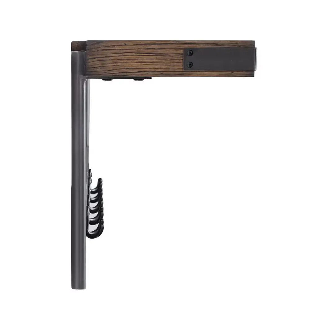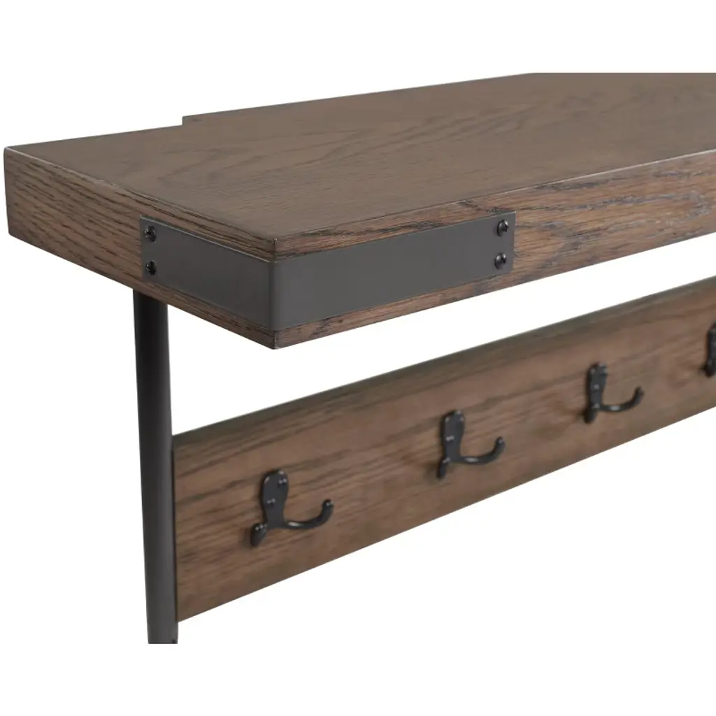 This Alaterre Furniture Kyra 42" Oak and Metal coat Hook with Shelf blends rustic and industrial style effortlessly to bring a chic look to your living space. The sleek solid Oak wood tray top is framed with classic black metal accents, perfect for displaying photographs, decorative pieces, and for hanging your everyday items such as coats and hats. The hooks feature a black double design - 5 in total - with a 6.75" distance between each one. To hang, simply insert the French cleat into the wall and then slide the hook into it for a secure fit. In addition, the shelf is 42"W x 10"D x 14"H to provide additional space for your items. This modern coat hook is not only stylish, but also functional - giving you more space for storage and decoration.