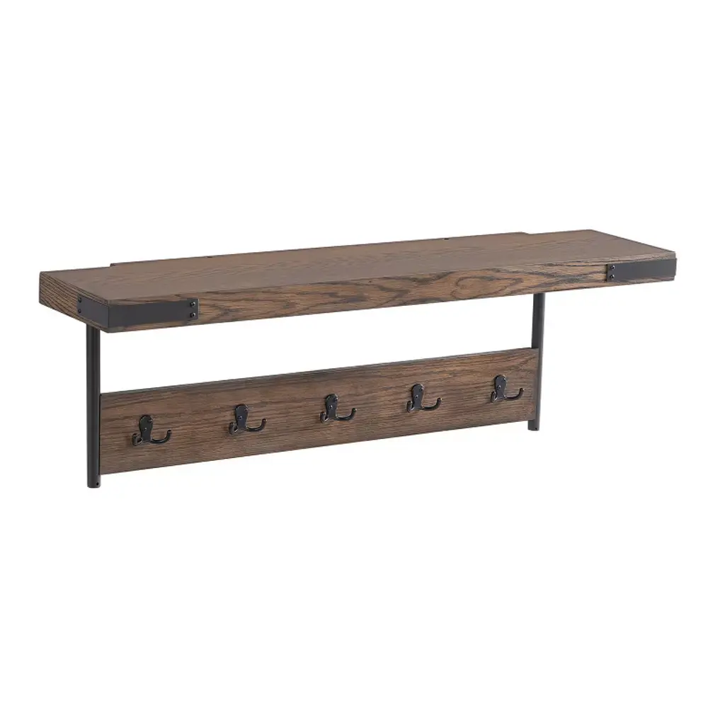 Alaterre Furniture Kyra 42 In. Oak And Metal Wall-mounted Coat Hook With Shelf, Rustic Industrial 5 Strong Double Hooks For Home And Office Storage