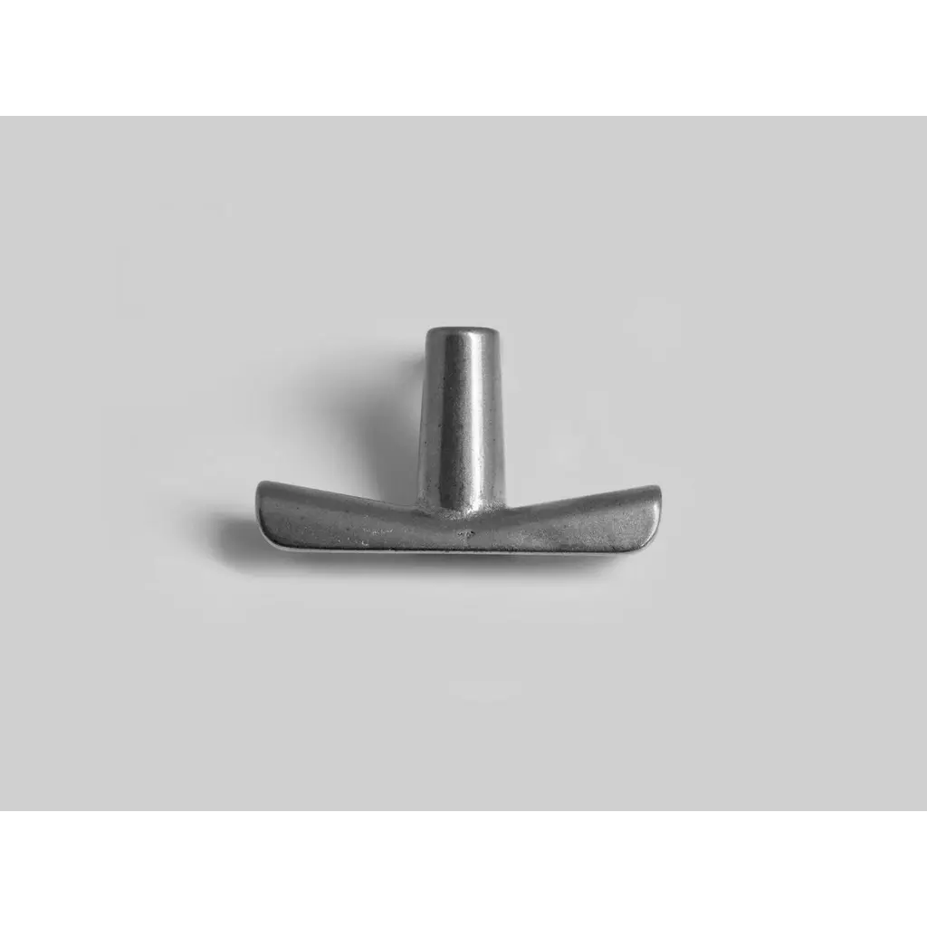 Aluminium Counter Hook by Henry WilsonDimensions: W 6 x D 4 x H 5 cmMaterials: Aluminium Designed for hanging bags and coats under bar counters. Each piece is sand cast in aluminium and rumble finished.They are manufactured in small batches meaning slight variations will occur from piece to piece. Production marks may include slight pour ripples or surface pitting. It will arrive with a bright finish but will oxidise over time to reveal a distinctive patina. Simply use a metal polish to restore a like-new finish. Henry Wilson's work combines a rational, democratic utility with an element of sculptural expression. There is a clear form and function in our products, but it’s important they also have feeling. We are interested in the awkward beauty that comes from something made by hand. We like to explore how imperfection can be introduced into an Industrial process, to make something at scale that retains a sense of individual charm.