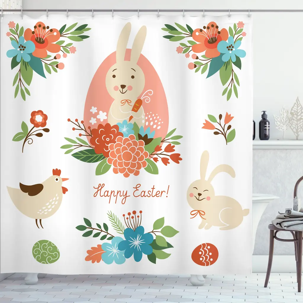 Ambesonne Easter Shower Curtain, Cloth Fabric Bathroom Decor Set With Hooks - 69 X 70 - Coral Beige