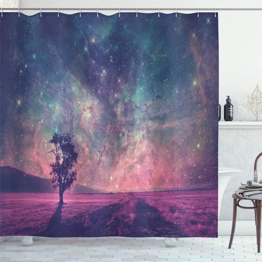 Ambesonne Galaxy Shower Curtain, Cloth Fabric Bathroom Decor Set With Hooks - 69 X 72 - Pink Coral Blue