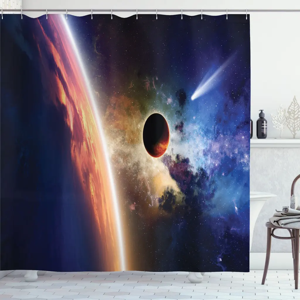 Ambesonne Outer Space Shower Curtain, Cloth Fabric Bathroom Decor Set With Hooks - 69 X 70 - Red Blue