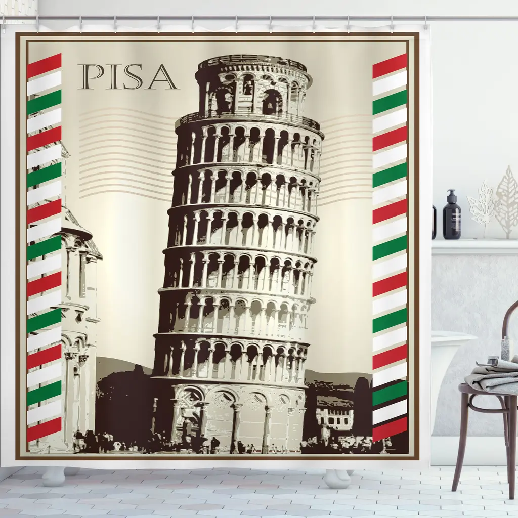 Ambesonne Pisa Shower Curtain, Cloth Fabric Bathroom Decor Set With Hooks - 69 X 70 - Multicolor