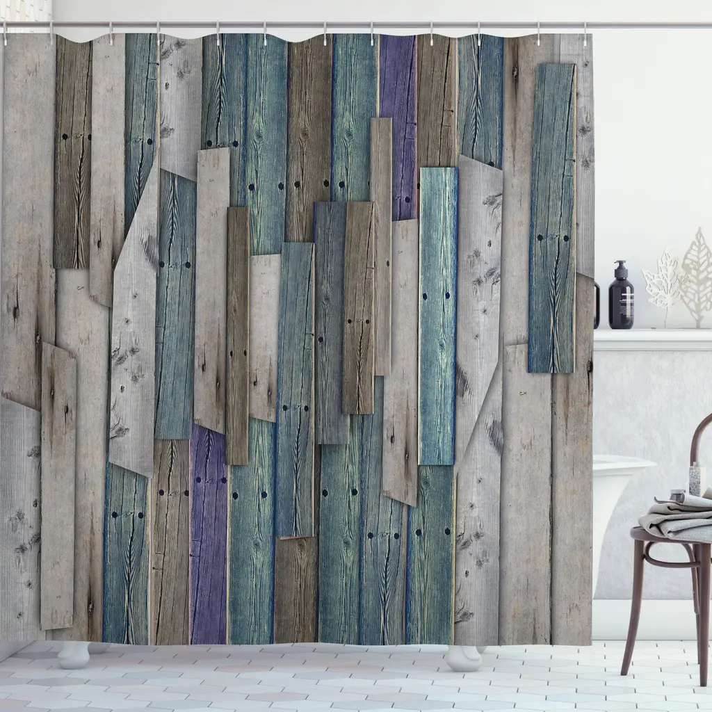 Ambesonne Rustic Shower Curtain, Cloth Fabric Bathroom Decor Set With Hooks - 69 X 70 - Umber Pale Teal Plum