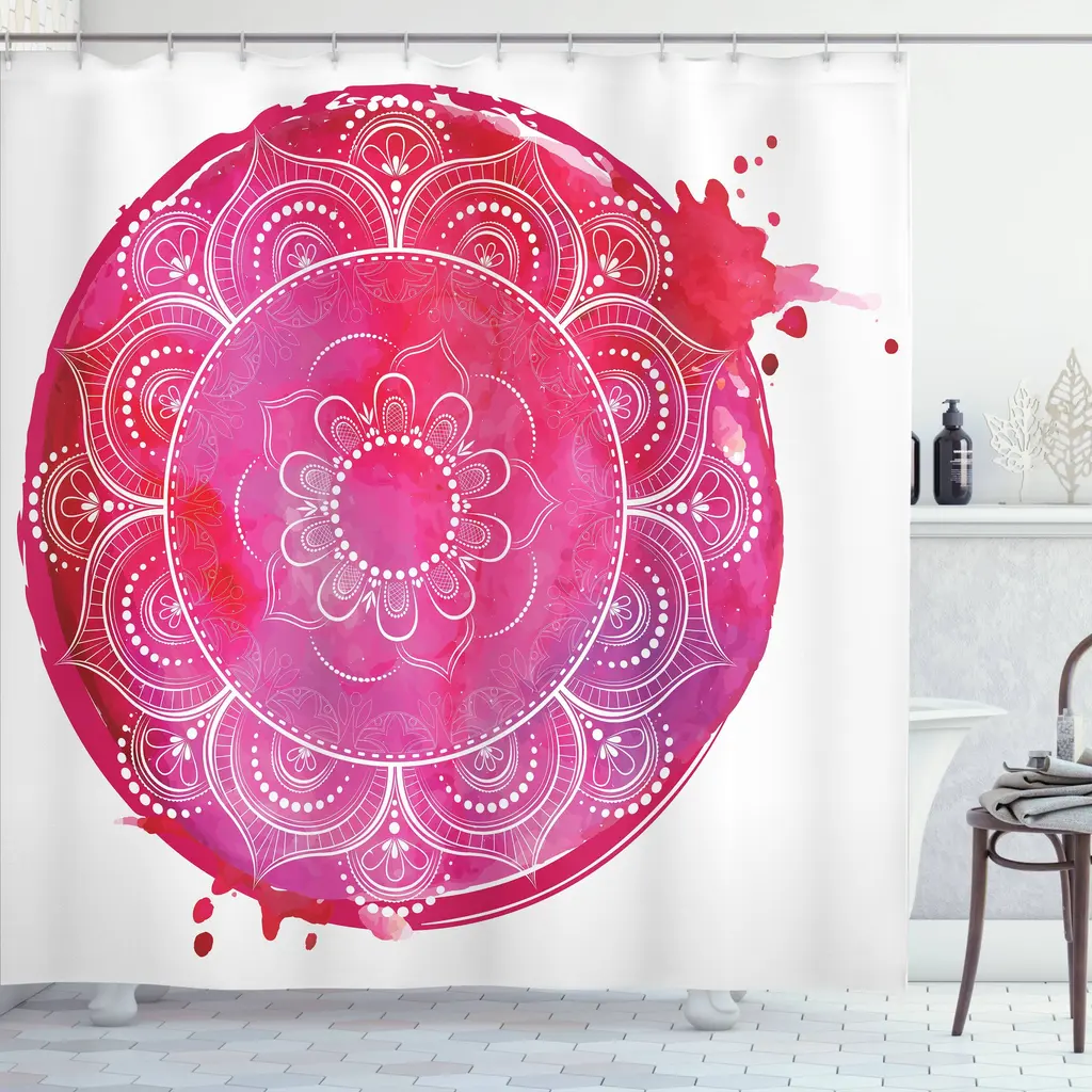 Ambesonne Yoga Shower Curtain, Cloth Fabric Bathroom Decor Set With Hooks - 69 X 70 - Magenta White Pink