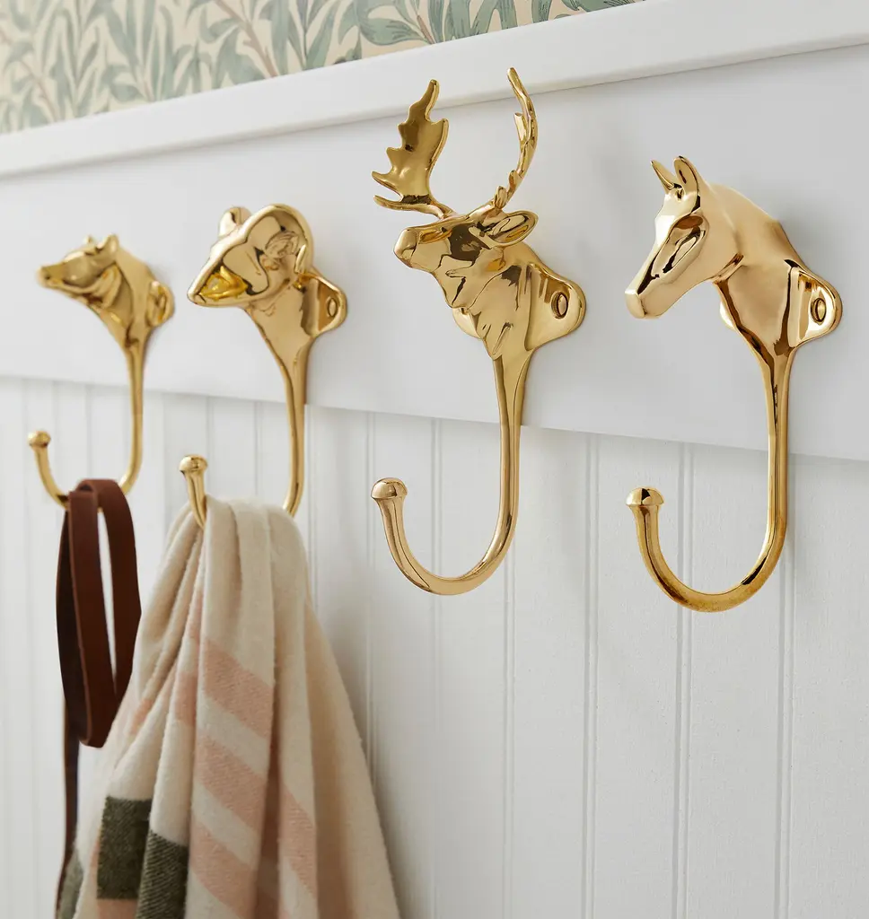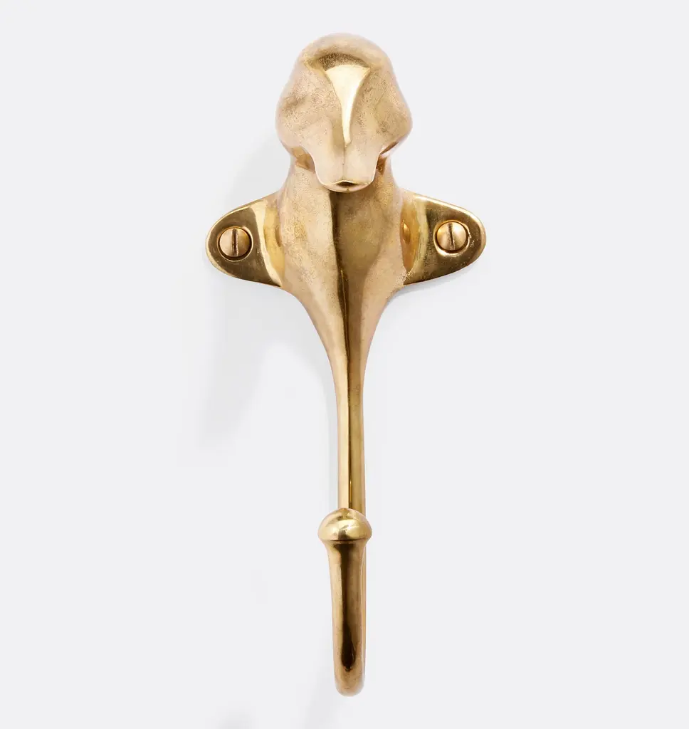 Add personality to any spot with this whimsical wall hook design, crafted from solid cast brass. Choose from six different animal designs for a one-of-a-kind piece. Details You'll Appreciate Whimsical, animal-inspired desgin Solid cast brass Unlacquered polished brass finish will patina beautifully over time Product Specifications Solid cast brass Mounting hardware included Imported