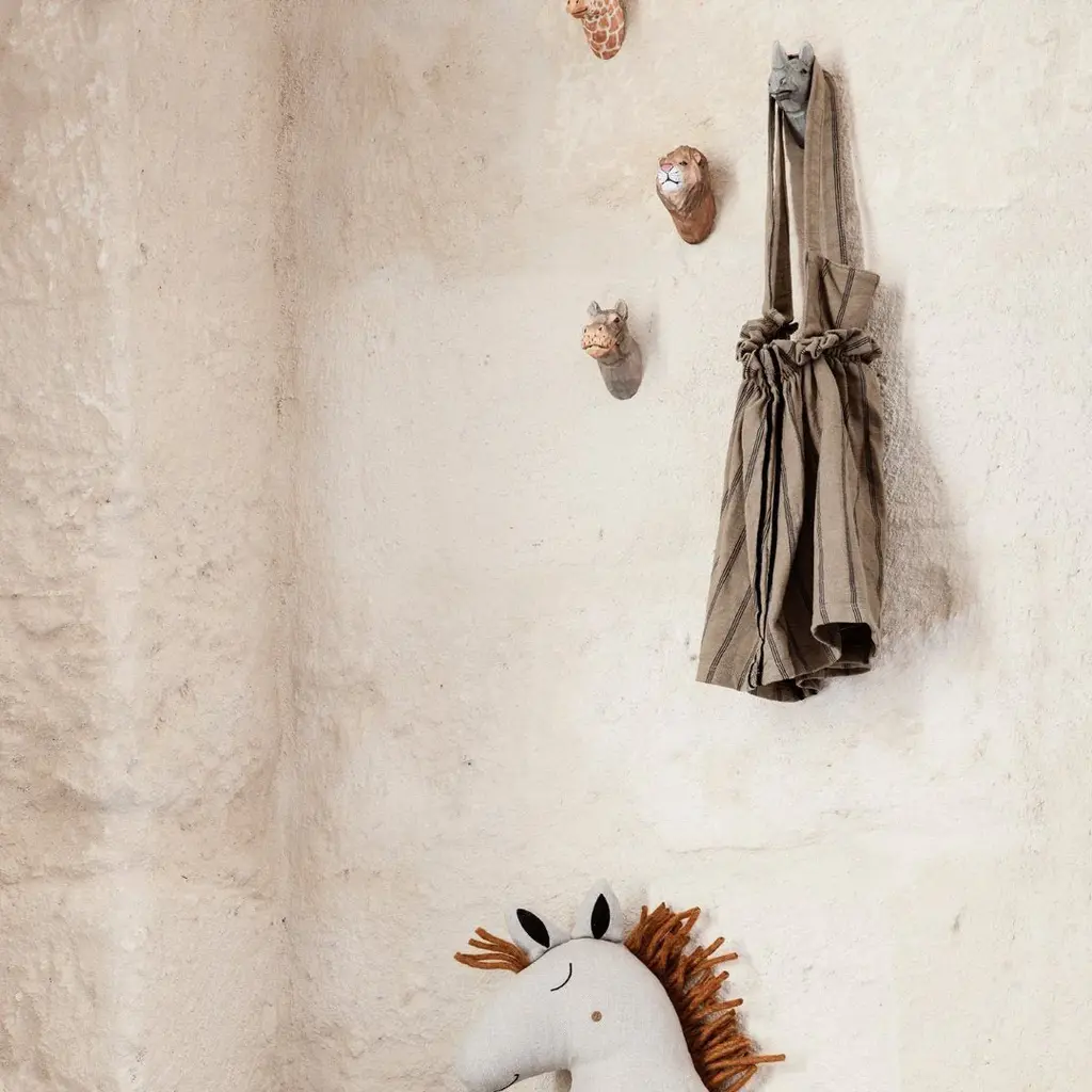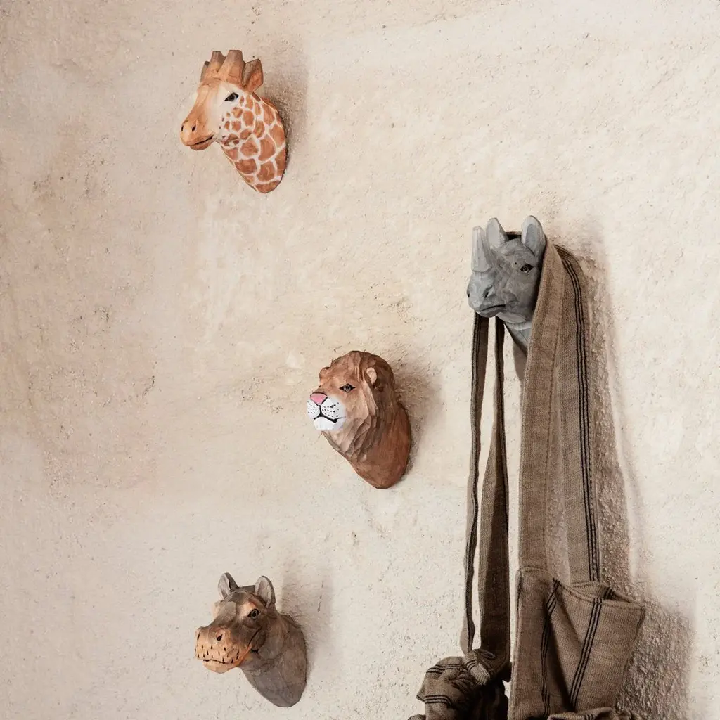Let your young explorers answer their call of the wild with our safari animal hooks. Hand-carved from wood and painted by hand, they're fitted with glass eyes that twinkle as they catch the light. They're detailed with all the hallmarks of their wild counterparts – from cheetah spots to tiger stripes. A wild and wonderful addition to a bedroom wall, they prove it's never too early to teach kids to hang their clothes properly.