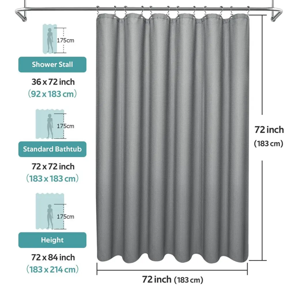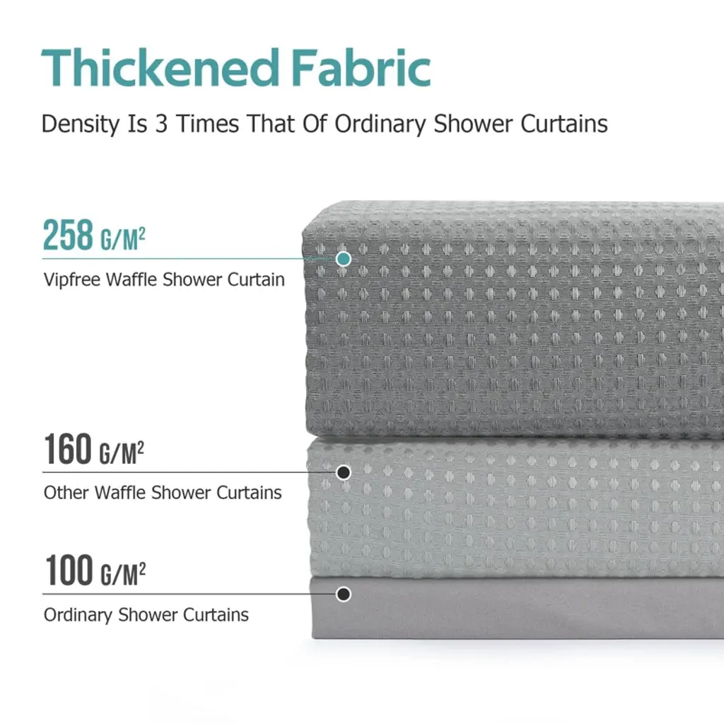 Upgrade your bathroom with this 3 - in - 1 shower curtain set. It's made of 258 GSM high - quality polyester, which is thick yet translucent, 1.12 pounds heavier than 90 GSM fabric curtains. The set includes a waffle shower curtain, a Peva clear liner, and 12 double - sided stainless - steel hooks. The shower curtain uses a waffle pattern weaving technique for excellent waterproof performance, and with the Peva liner, it forms a double - layer waterproof barrier. The liner has 3 strong magnets to prevent water from splashing out. The 30g weighted hem of the curtain stops it from floating, offering enhanced privacy. The double - sided stainless - steel hooks are large enough to fit most shower curtain rods, allowing easy sliding. Suitable for various places like private homes, RVs, campsites, college dorms, hotels, and clubs, this set combines luxury, functionality, and style, making your bathroom experience more enjoyable.