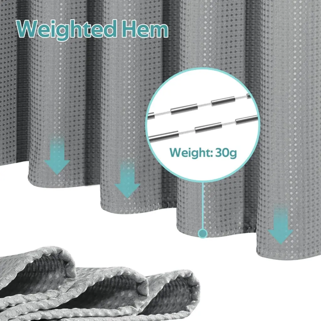 Aoibox 3 In 1 Waffle Shower Curtain Set With Liner & 12 Double Sided Hooks, 258gsm Luxury Weighted Fabric For Bathroom, Grey