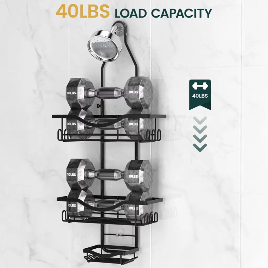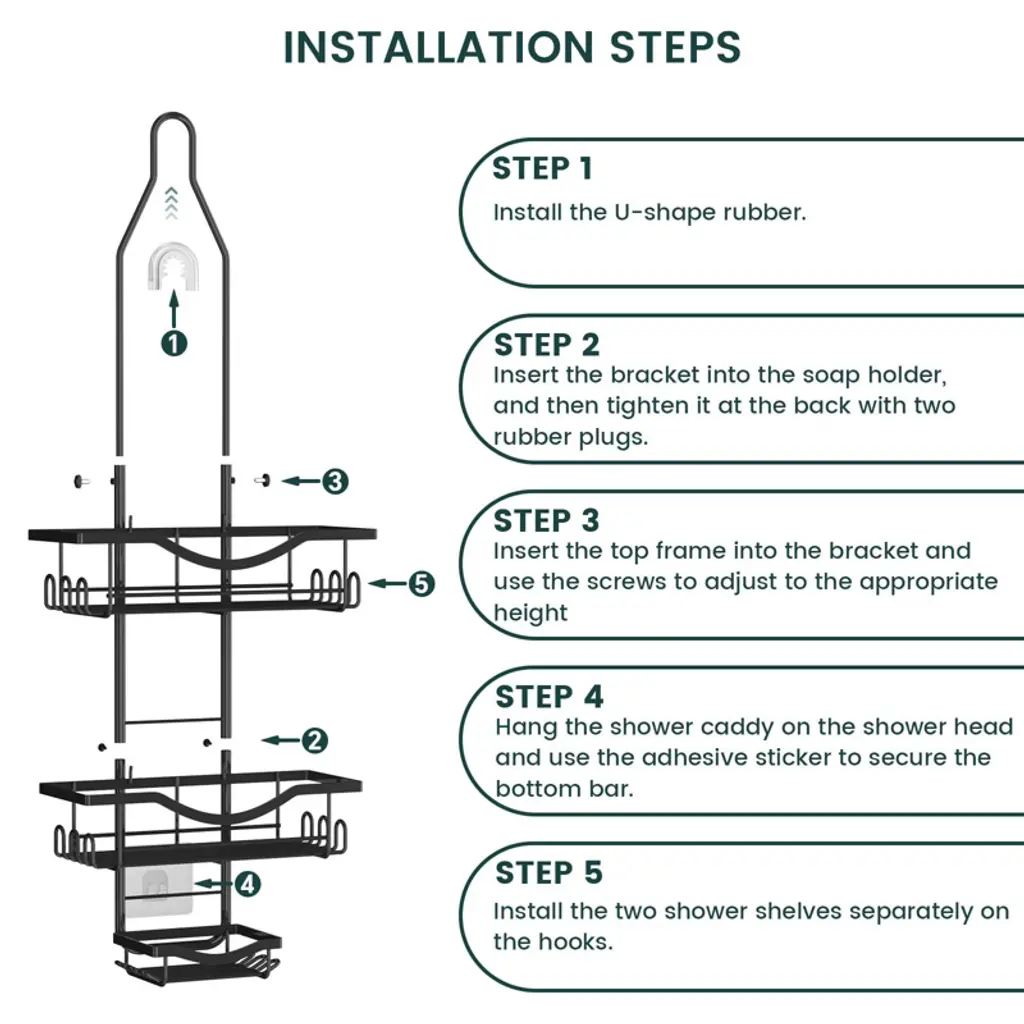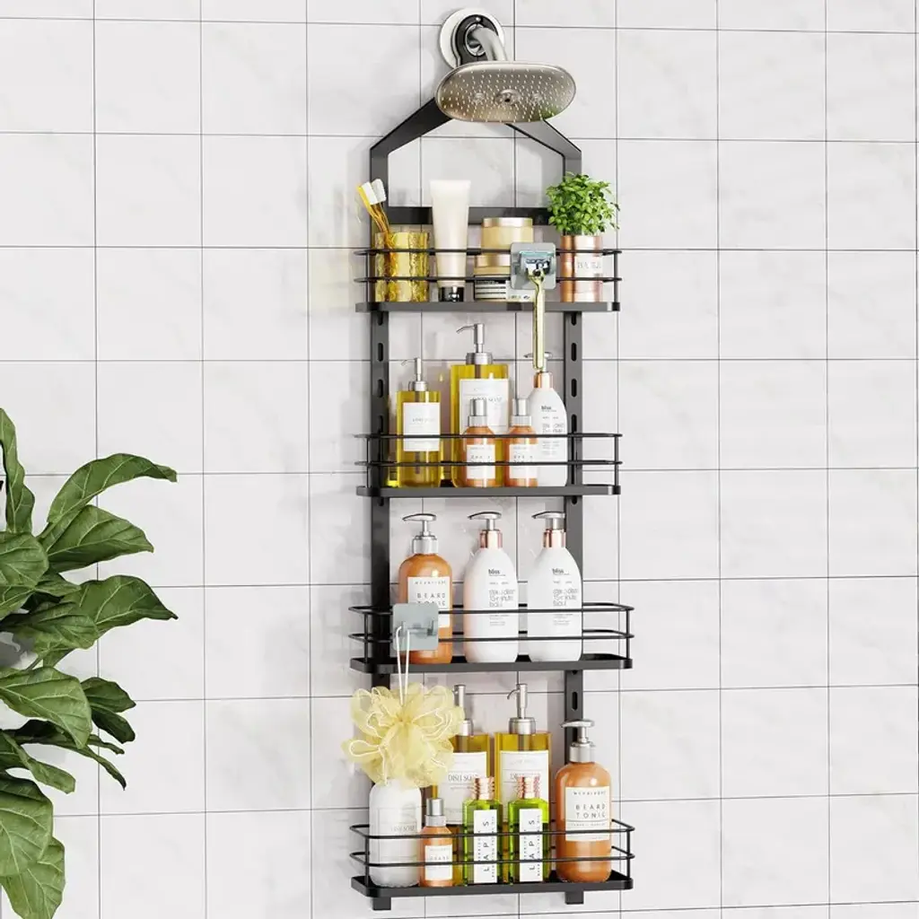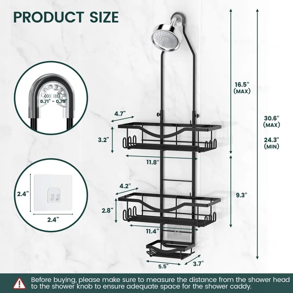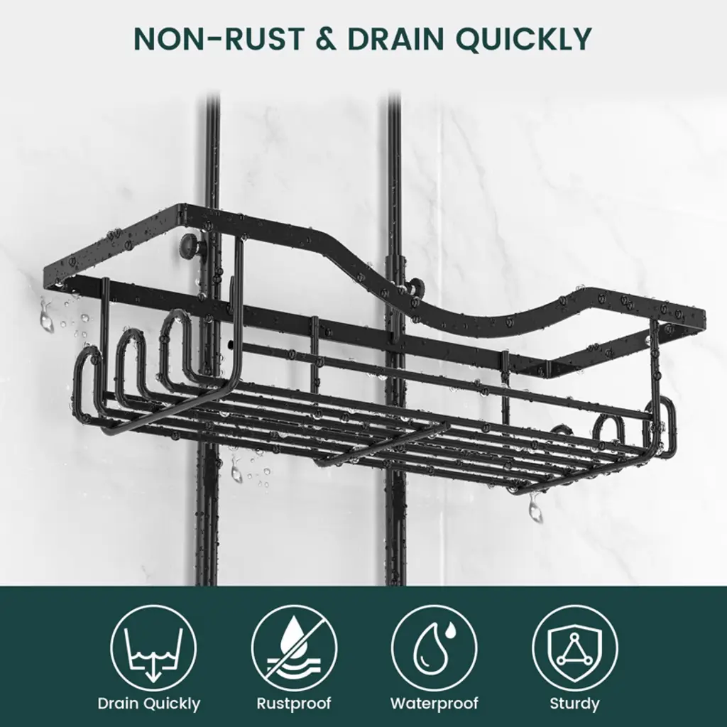 Upgrade your shower organization with this adjustable hanging shower caddy. It's made of premium waterproof and rustproof materials, ensuring long - lasting durability in wet shower environments. The adjustable height feature allows you to customize it according to your needs, whether you want easy - access toiletries or more space for taller bottles. With a large capacity, it can hold various bath essentials, keeping your shower area tidy. The anti - slip rubber rings provide a stable fit on different shower heads, and the rapid drainage design prevents water from pooling. The multiple hooks and soap holder add extra convenience for hanging bathroom accessories. Ideal for wall - mounted shower heads, this caddy simplifies your bathing routine and enhances your shower experience.
