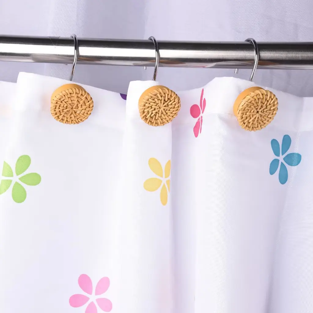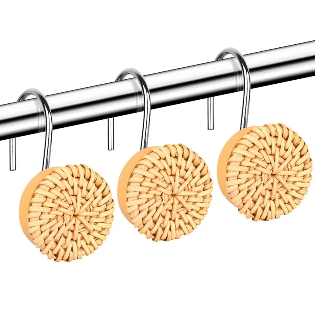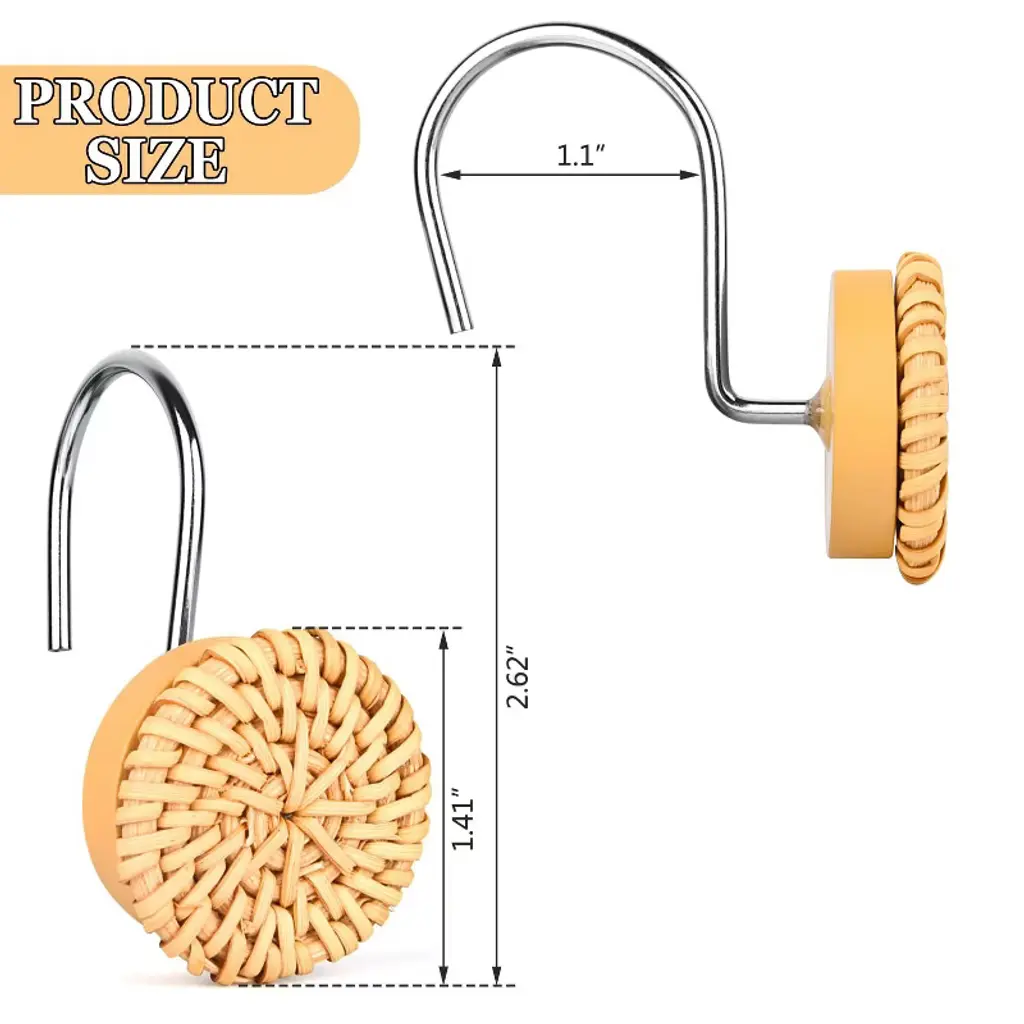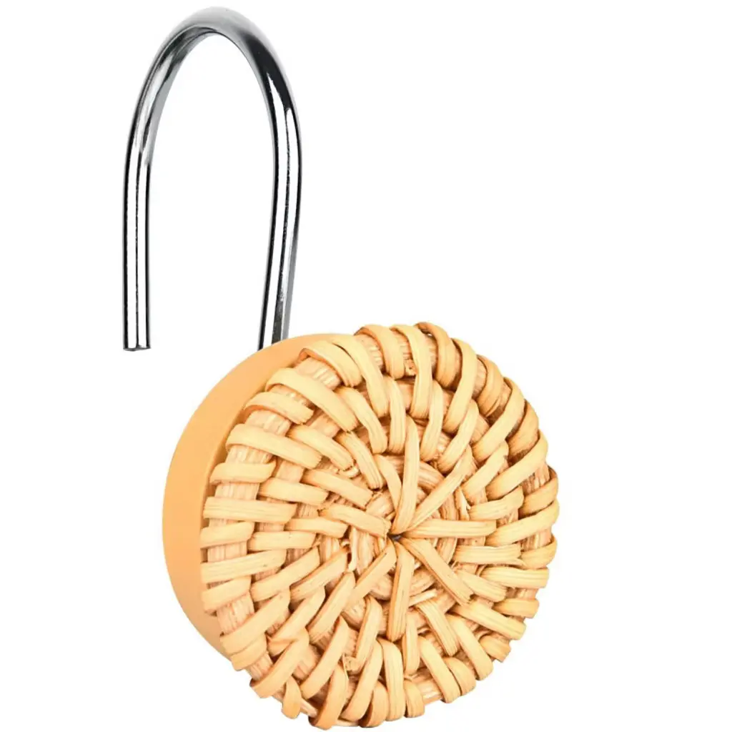 Enhance your living space with these exquisite shower curtain hooks. Each pack comes with 12 pieces, perfect for various curtain - hanging needs. Their bohemian style brings a rustic charm to your bathroom, making it a standout space. Crafted from natural rattan, resin, and electroplated metal, they are rust and waterproof, ensuring long - lasting use. With a 3.8mm wire construction, they can support up to 35 pounds, making them suitable for heavy curtains and other items. Installation is a piece of cake; just slide them into the curtain holes and hang on the rod. These hooks aren't just for the bathroom. Use them in the kitchen to hang towels, in the bedroom for clothes, in the office for mugs, or in the garden for plants. They add a touch of style and convenience to every corner of your life.
