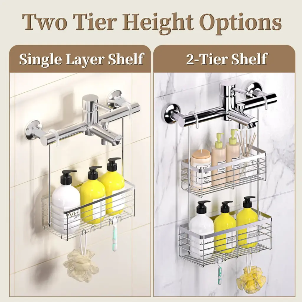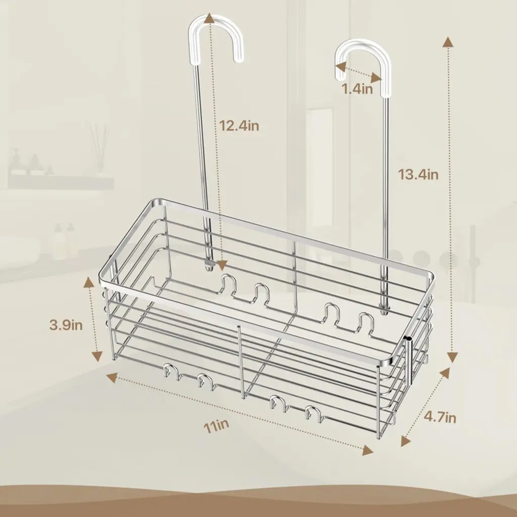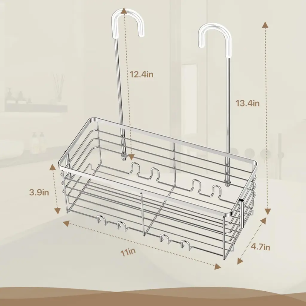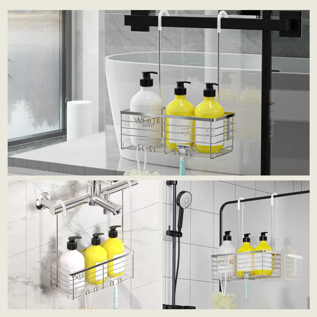 Upgrade your bathroom organization with this amazing hanging shower organizer. It's made of grade 304 stainless steel, which is rust - resistant and can withstand the humid shower environment. The rotatable design allows you to hang it over the door, shower head, towel bar, or curtain rod. This organizer helps you say goodbye to the mess in your bathroom by providing a large storage capacity for your shampoo bottles and other essentials. It also features a water - draining design for easy cleaning and four small hooks on the front for hanging small items. Ideal for both shower and interior doors, it brings great convenience to your daily life.