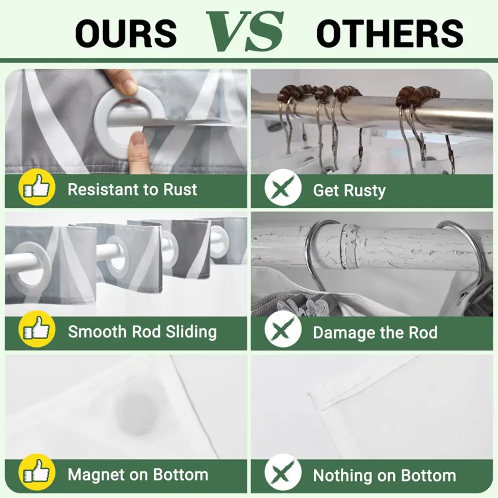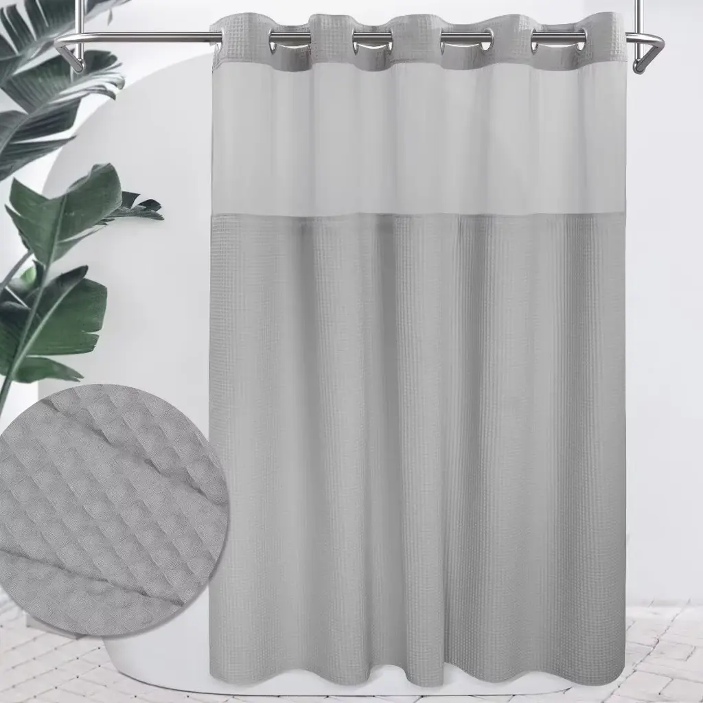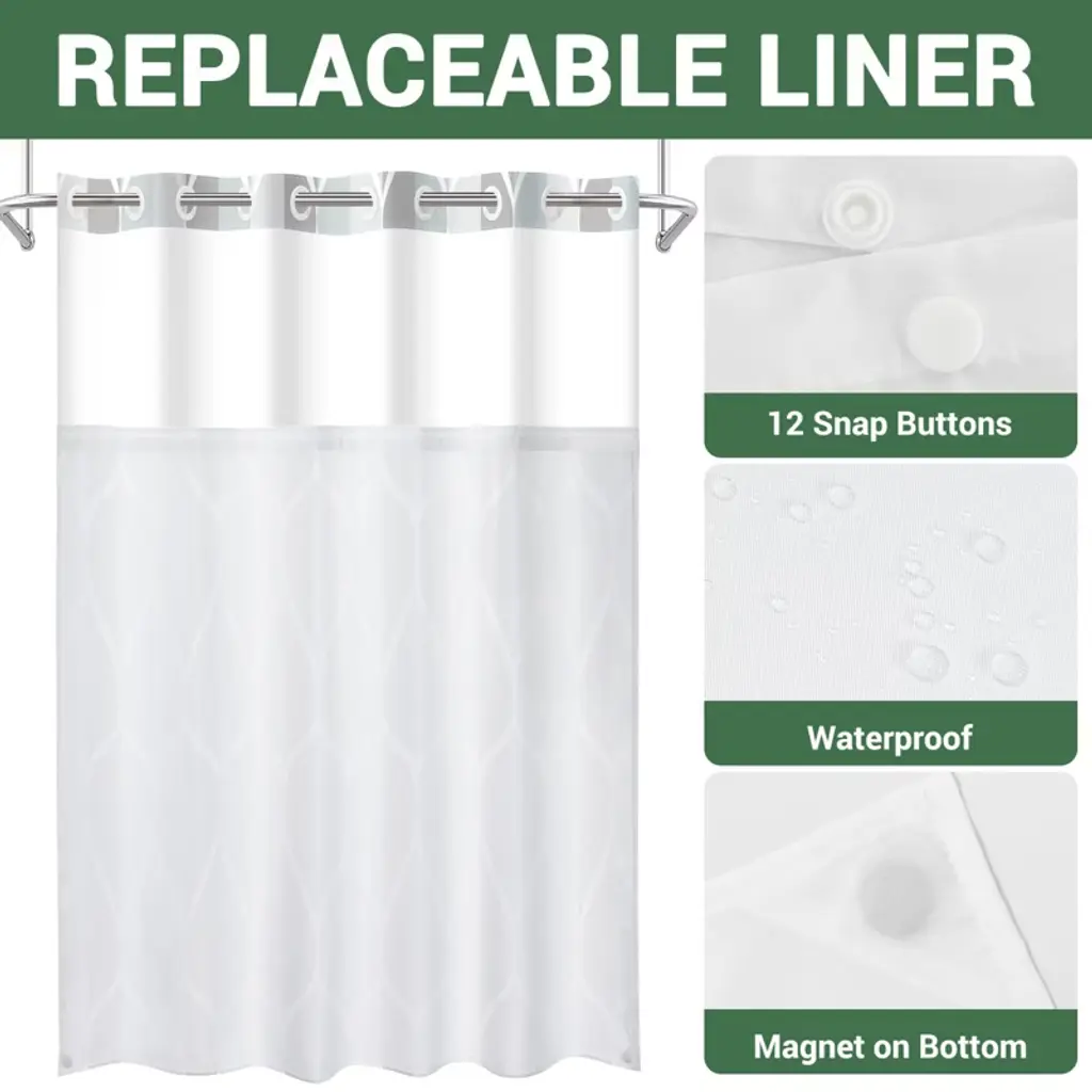Discover this amazing shower curtain set! Crafted from high - quality, eco - friendly polyester fabric, it offers a perfect blend of style and functionality. The no - hook design, along with built - in rings and grommets, makes installation a breeze, no need to remove the shower rod. The detachable fabric liner is not only convenient for cleaning but also helps you save money. The top translucent mesh window allows light in while maintaining privacy and speeds up water evaporation. Ideal for hotel - style bathrooms or your home SPA, this curtain can be machine or hand - washed, ensuring long - lasting cleanliness. Its modern geometric waterdrop design adds a touch of elegance to your bathroom, making your daily shower a more enjoyable experience.