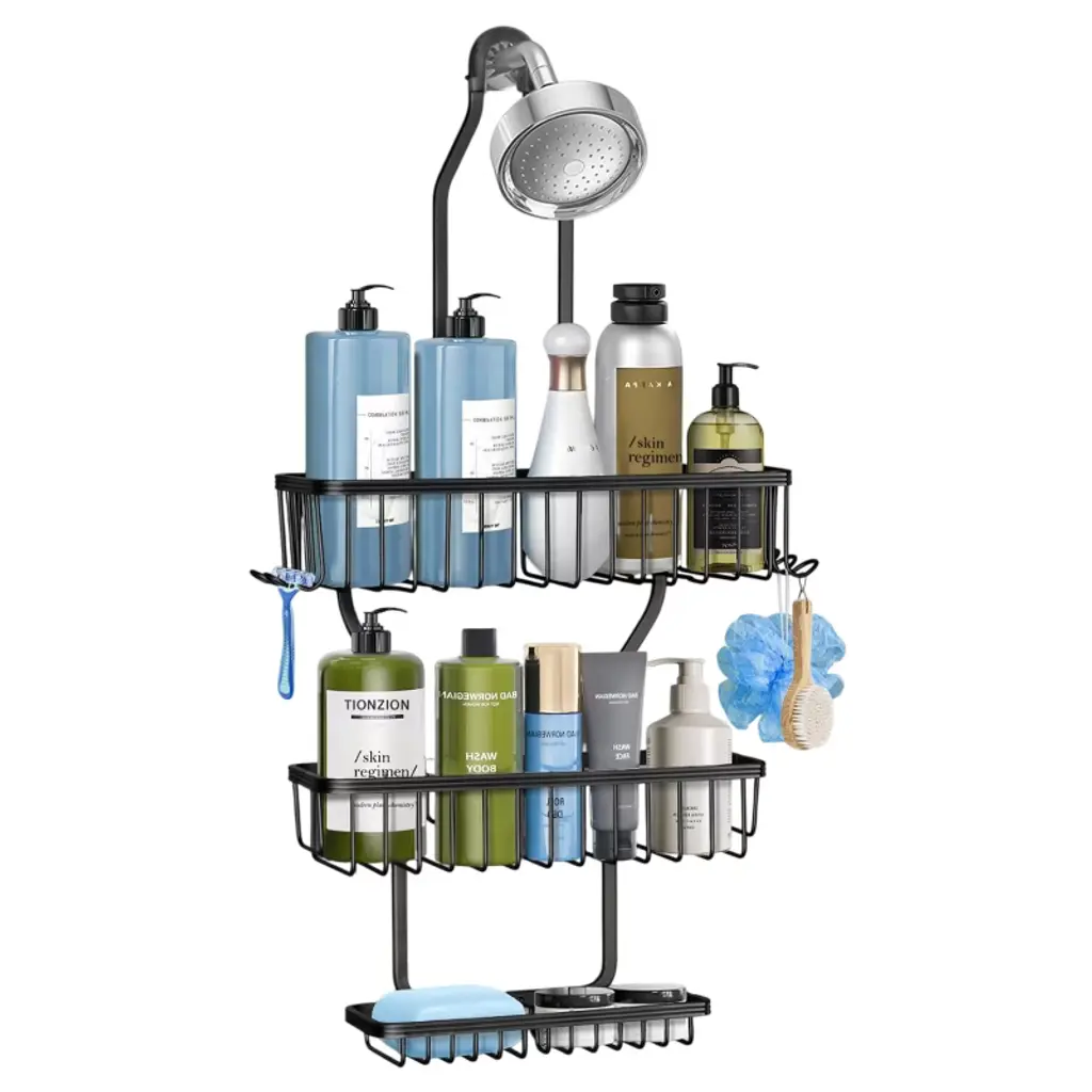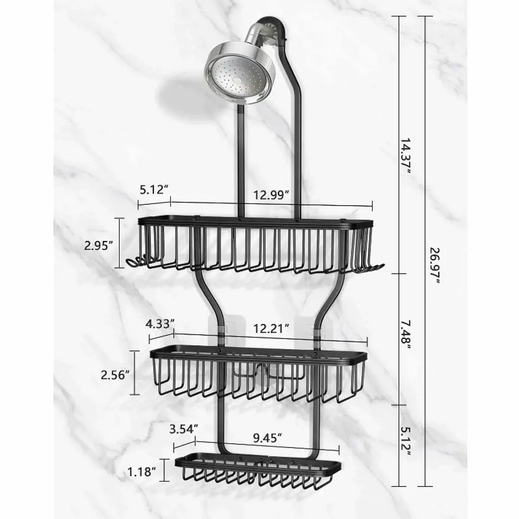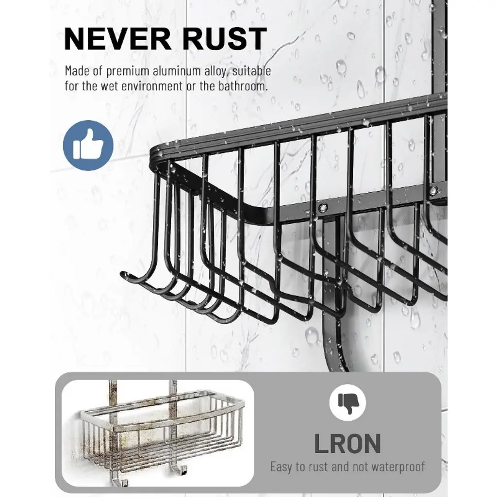 Aoibox Shower Caddy Hanging Organizer With Soap Basket & 6 Hooks, Rustproof Aluminum Over Showerhead Storage For Bathroom Essentials