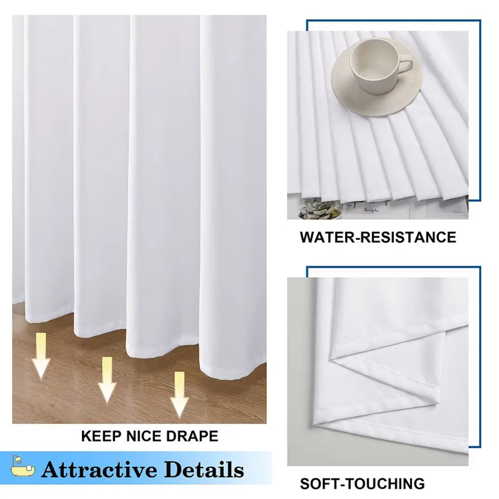 Discover the perfect shower curtain for your bathroom! Crafted from 100% polyester fabric, this curtain is skin - friendly and wrinkle - free, with a soft touch. Its solid color design not only enhances the bathroom's taste but also filters light to protect your privacy. The water - resistant coating keeps the bathroom dry by preventing water splashing. It comes with 12 rust - proof metal grommets and 12 plastic hooks for easy installation. This curtain can be used alone or paired with a liner. It's suitable for a wide range of places, including homes, hotels, and dorms. When it comes to cleaning, simply machine - wash it on a gentle cycle in cold water, iron at low temperature if necessary, and tumble dry at low temperature. It's a long - lasting and practical addition to any bathroom, offering a convenient and elegant bathing experience.