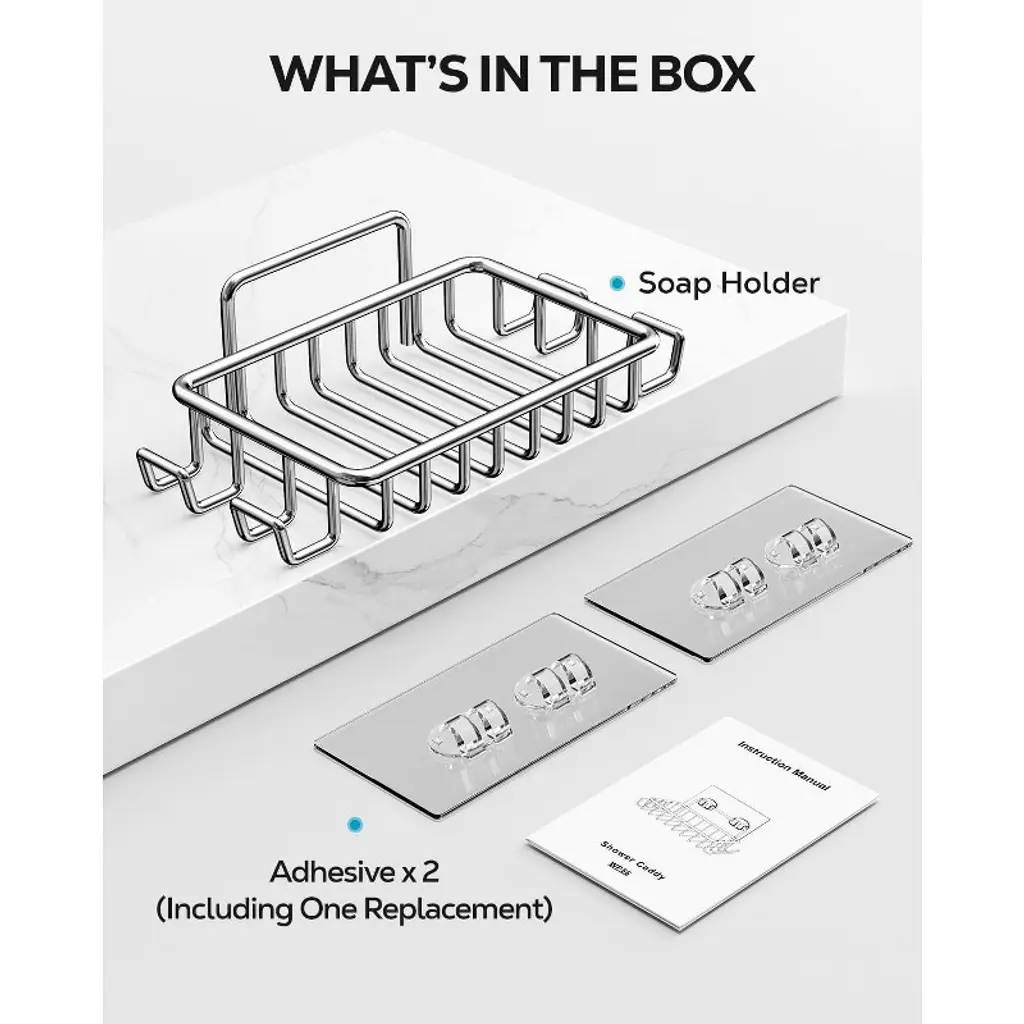 Aoibox Stainless Steel Adhesive Soap Holder With 4 Hooks For Shower Wall, Rustproof And Waterproof Bathroom Soap Dish
