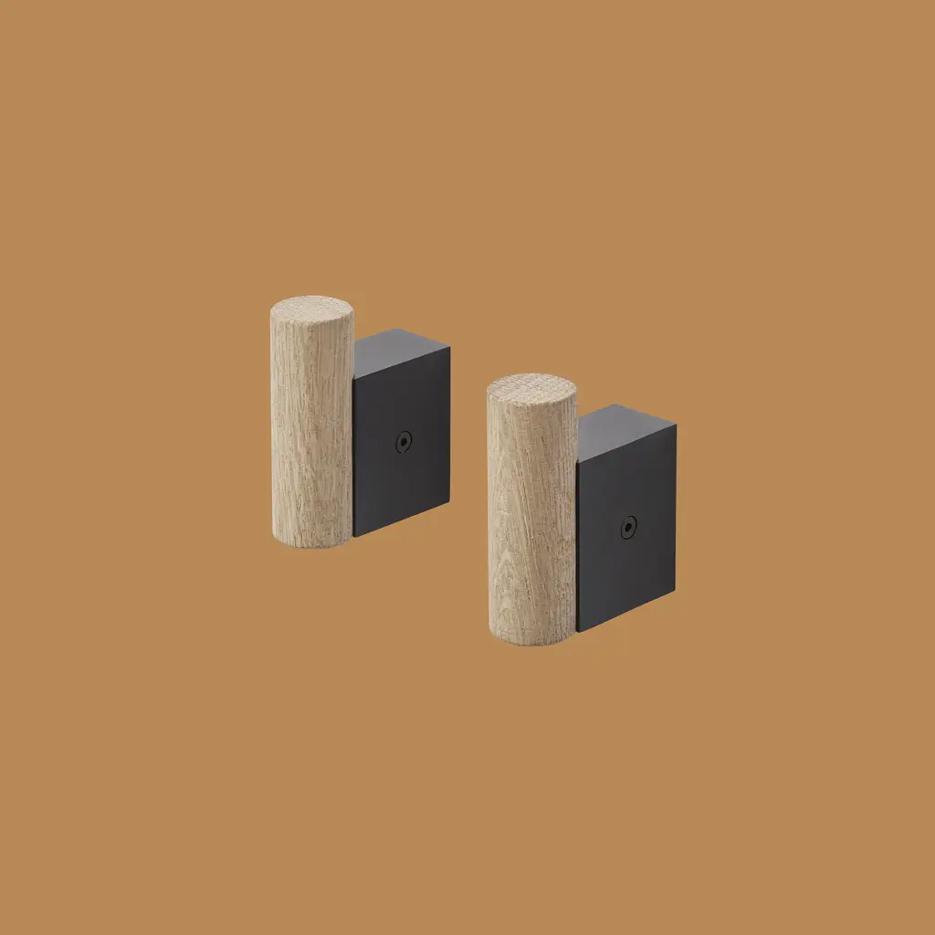 Refined but sturdy, Attach initially arose from designer Dimitri Bähler’s fascination with a pair of elementary shapes. He juxtaposes a simple wood cylinder with an anodized aluminum form, an unlikely union of industrial and natural materials. The result is a modern take on the essential coat hook, effective on its own or lined up on the wall in multiples.