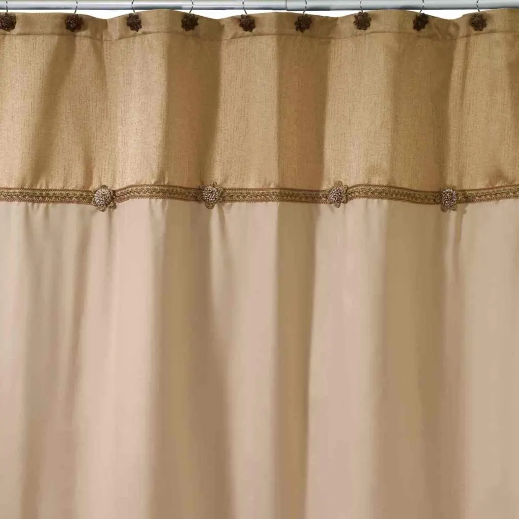 The Avanti Braided Medallion Gold Shower Curtain Hooks faithfully recreate the medallion from the coordinating shower curtain in brushed and antique gold. Made of durable, hand-painted resin and stainless steel hooks. Set includes 12 hooks.