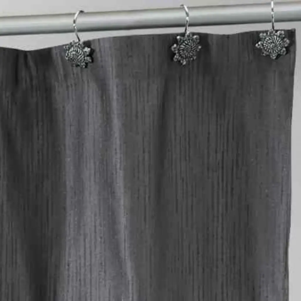 The Avanti Braided Medallion Granite Shower Curtain Hooks faithfully recreate the medallion from the coordinating shower curtain in dark grey. Made of durable, hand-painted resin and stainless steel hooks. Set includes 12 hooks.