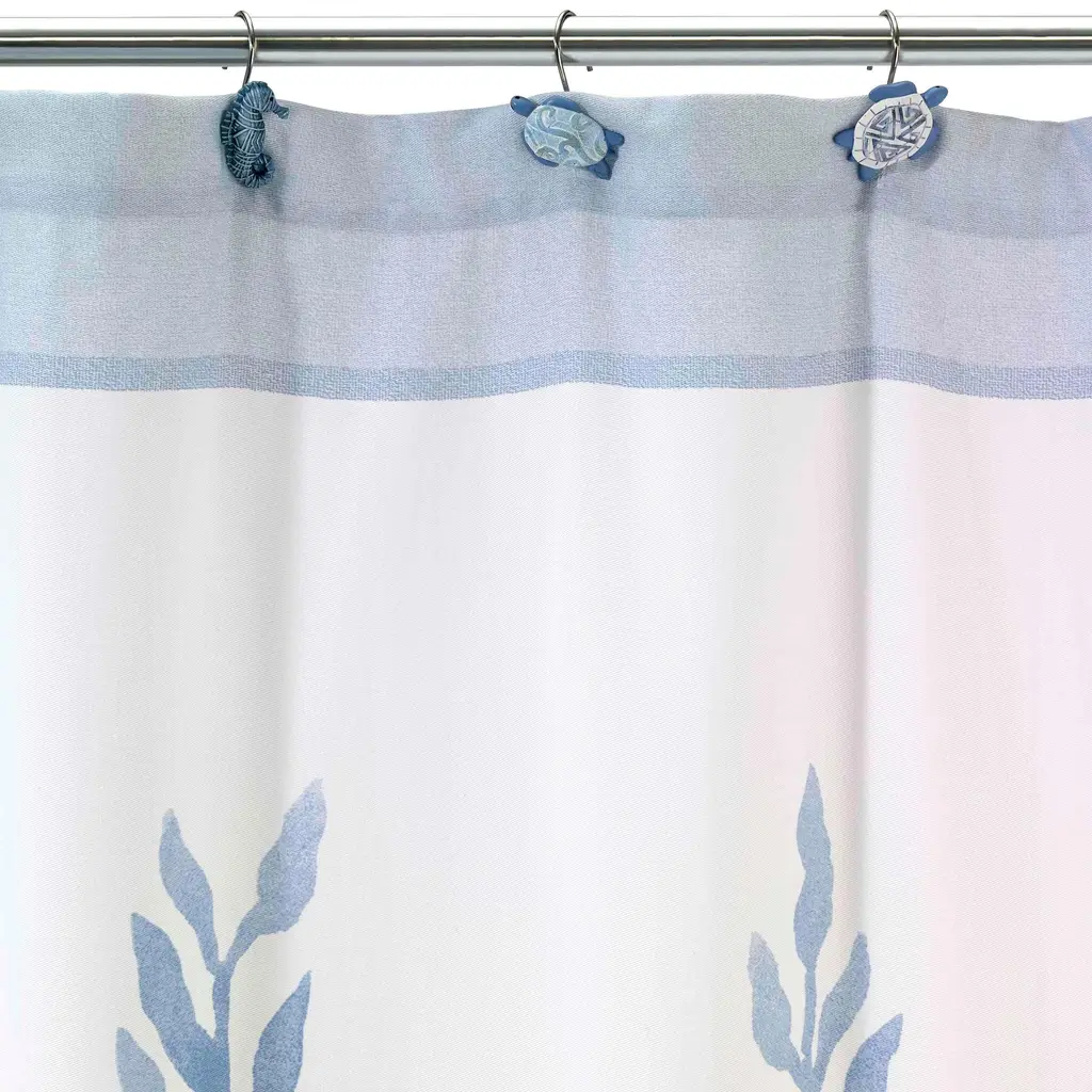The Avanti Caicos Decorative Shower Curtain Hook Set features 3 figural designs-two sea turtles and a seahorse. Crafted of durable, hand-painted resin with stainless steel hooks, set of 12, 4 of each design. Coordinating shower curtain, rug, towels and accessories available.