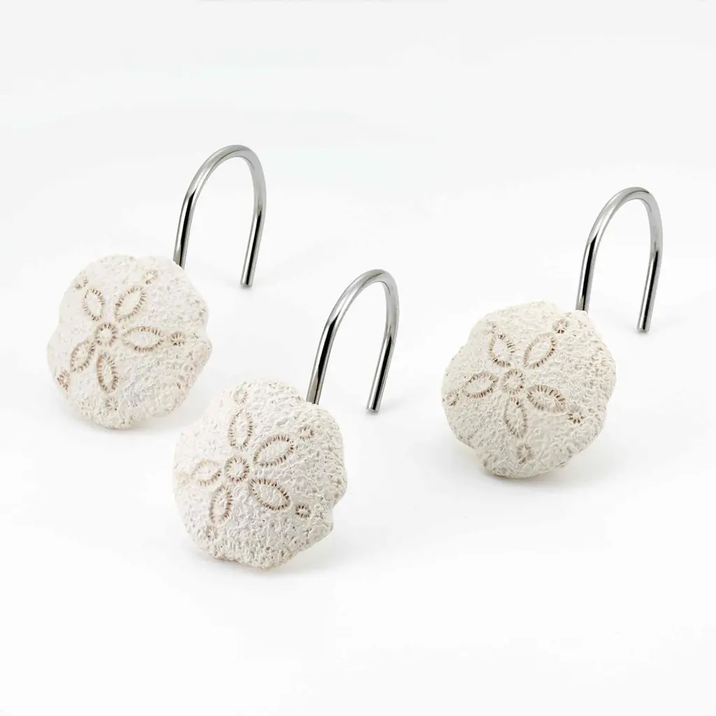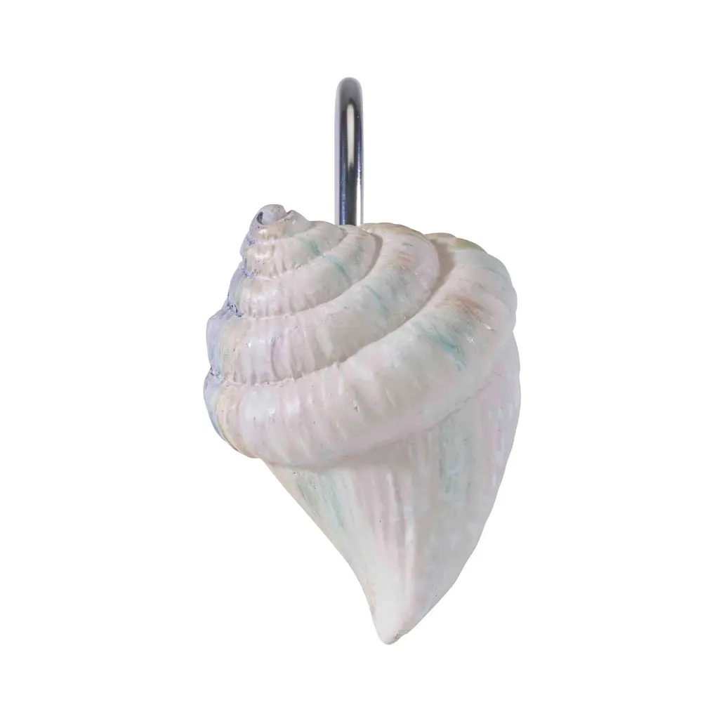 The Avanti Coastal Terrazzo Shower Curtain Hooks feature 3 different under-the-sea icons-2 shells and a starfish. Made of hand-painted resin. Set of 12, 4 of each design. Imported. Coordinating shower curtain, towels, rug and accessories available.