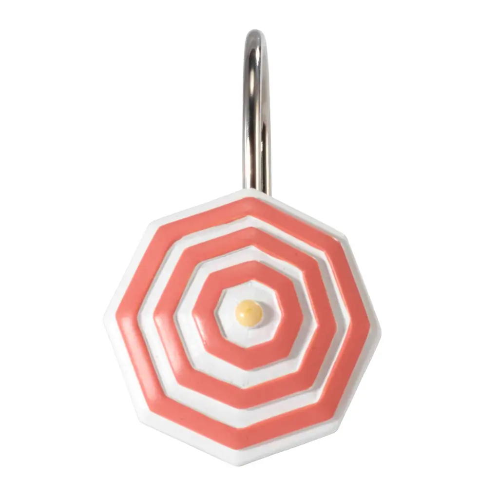 The Avanti Flamingo Paradise Shower Hooks pick up the striped umbrella design from the collection with 6 pink and 6 green in the 12 piece set. The umbrellas are made of durable, hand-painted resin and attached to a stainless steel hook. The perfect finishing touch for your tropical-themed bathroom.