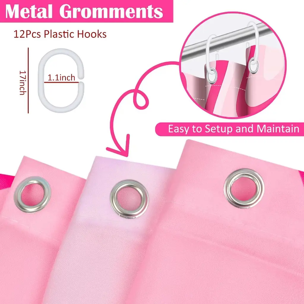 Bagokie Shower Curtain Set 72x72 Inches With 12 Hooks, Pink