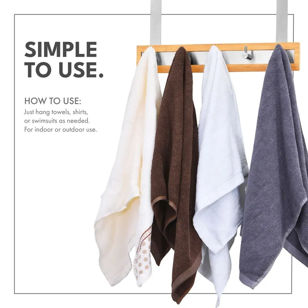 Bamboo Stainless Steel Over-The-Door Towel Hooks: Stylish And Functional Bathroom Organization Solution For Towels And More - Brown