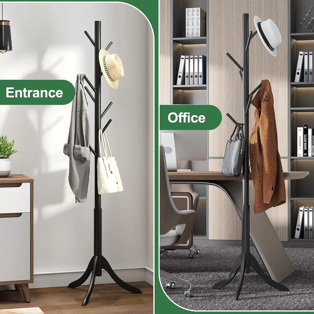 【ADJUSTABLE SIZES】- Assemble the coat rack according to the height you need; use 1 sections for a toddler-sized rack, 2 sections for a kid’s sized rack, or use all 3 for a standard, adult sized rack. 【HEAVY DUTY CONSTRUCTION】 - Super Durable - Made of 1.5 inch thick, high-quality lacquered rubberwood screw-on pieces and 3 prong legs for stability that supports multiple heavy garments and outerwea. 【SPACE SAVING 】- This coat rack takes up minimal space in foyers, living rooms, office work space, doctors' offices and keeps coats and accessories out of cramped closets and easily accessible with hooks all around the rack. 【EASY TO ASSEMBLE】 - No Tools Required - Assemble the coat rack in just a few quick steps. No tools are required, and a clear assembly instruction manual walks users clearly through the entire process. 【MULTIPURPOSE】 - Clothing and Accessories - 6 sturdy, convenient hooks allow you to hang several clothing items such as coats, jackets, and cardigans along with accessories like scarves, hats, handbags, briefcases, laptop bags, and umbrellas. Adjustable sizes, Assemble the coat rack according to the height you need. Use 1 sections for a toddler-sized rack. 2 sections for a kid’s sized rack. Use all 3 for a standard, adult sized rack. Super Durable - Made of 1.5 inch thick, high-quality lacquered rubberwood screw-on pieces and 3 prong legs.