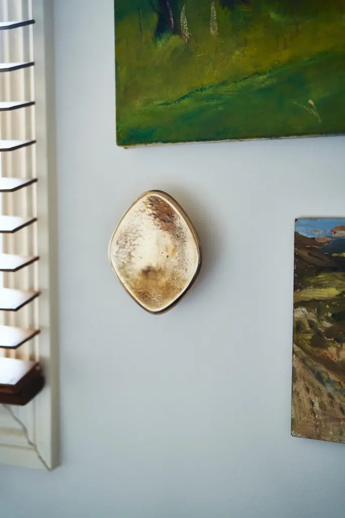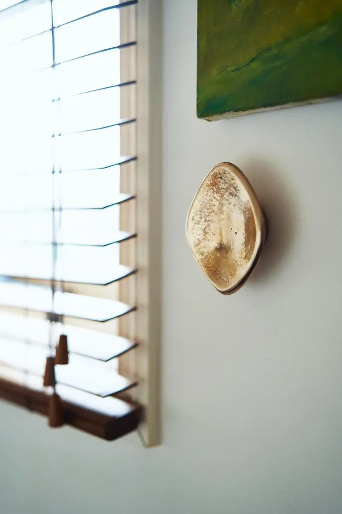 Sandcast modern solid bronze wall hook, with mount system. Designed by Daniel Barbera.