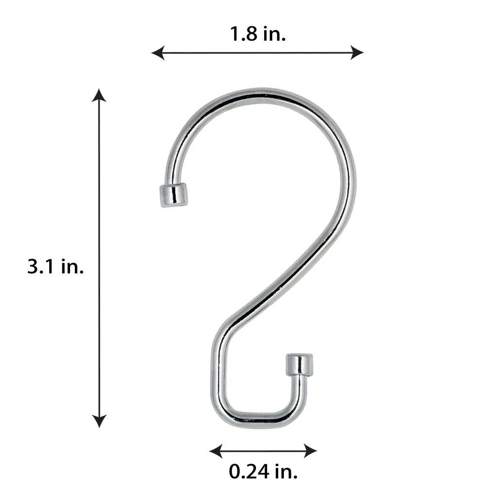 Bath Bliss 12 Pack S-Hook Shower Curtain Rings - Chrome